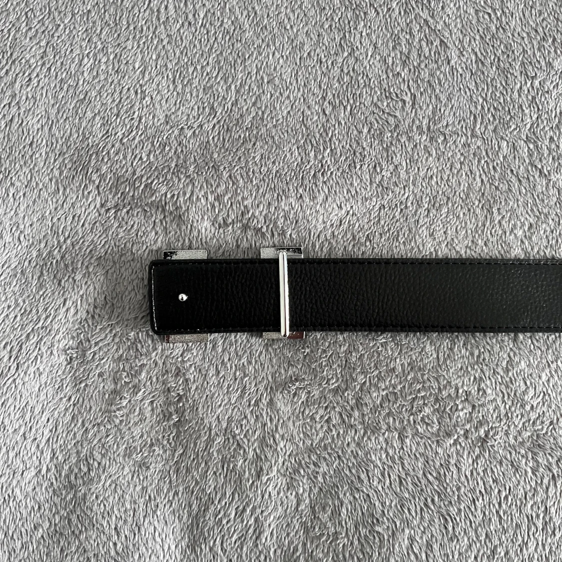 Säljer ett stilrent Hermès bälte med ikoniskt H-spänne i silverfärgad metall. Ena sidan är djupblå och den andra klassiskt svart, båda i exklusivt skinn med vit kontrastsöm. Perfekt accessoar för att lyfta din outfit med lyxig vibe.