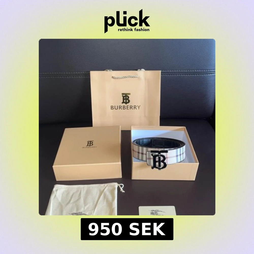 Säljer ett klassiskt rutig bälte från Burberry med ikoniskt BB-spänne i svart metall. Bältet har beige, svart och röd färg i det typiska Burberry-mönstret och är tillverkat i skinn. Perfekt accessoar för att lyfta din outfit.