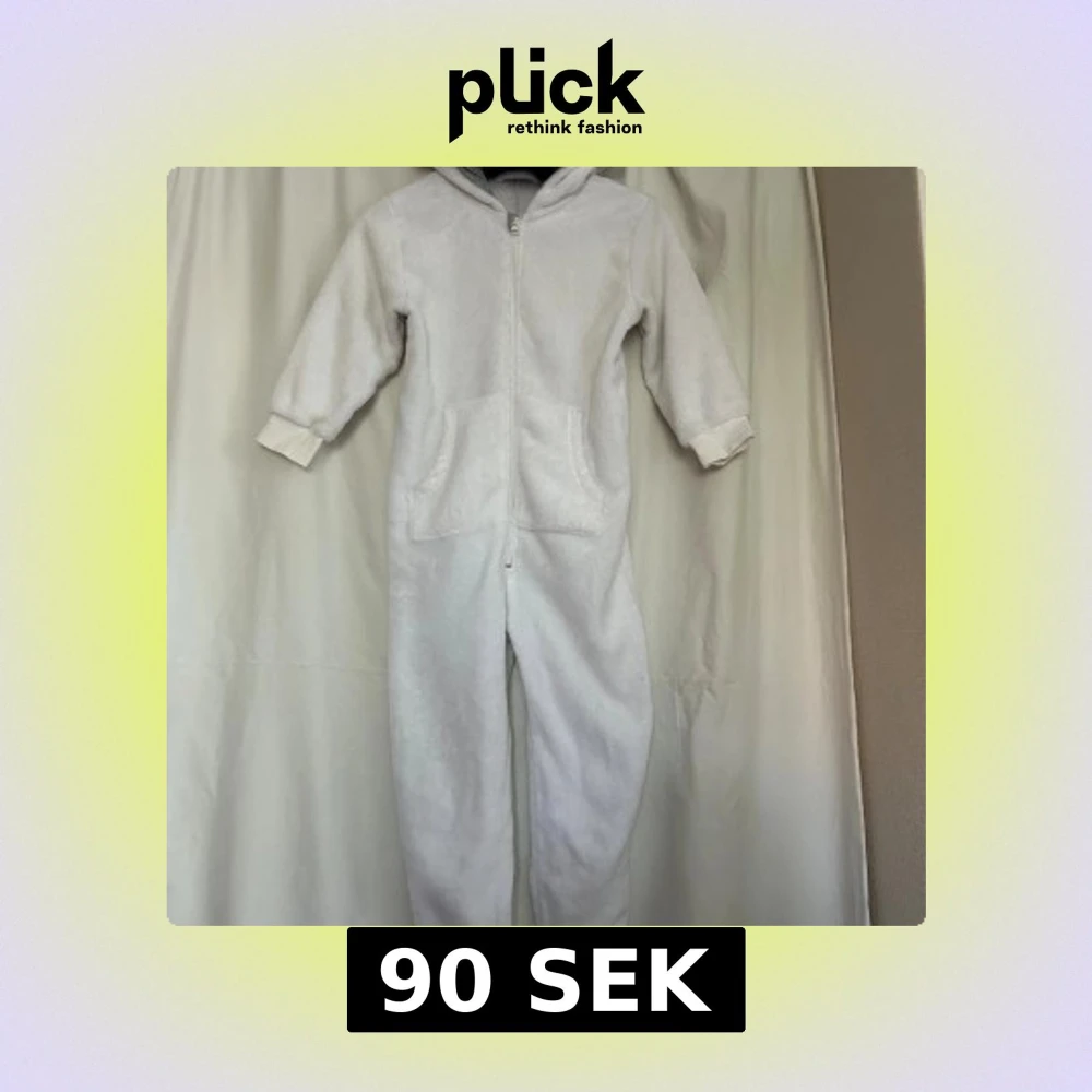 Supermjuk vit jumpsuit från Lindex i fleece med huva och dragkedja framtill. Har ribbade muddar vid ärmar och ben samt fickor på magen. Sötaste isbjörnen ❤️