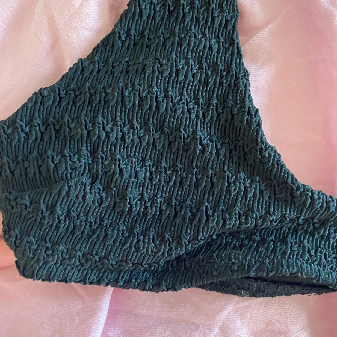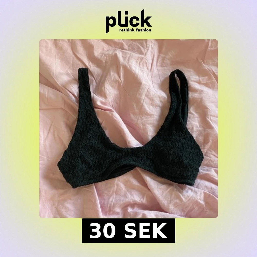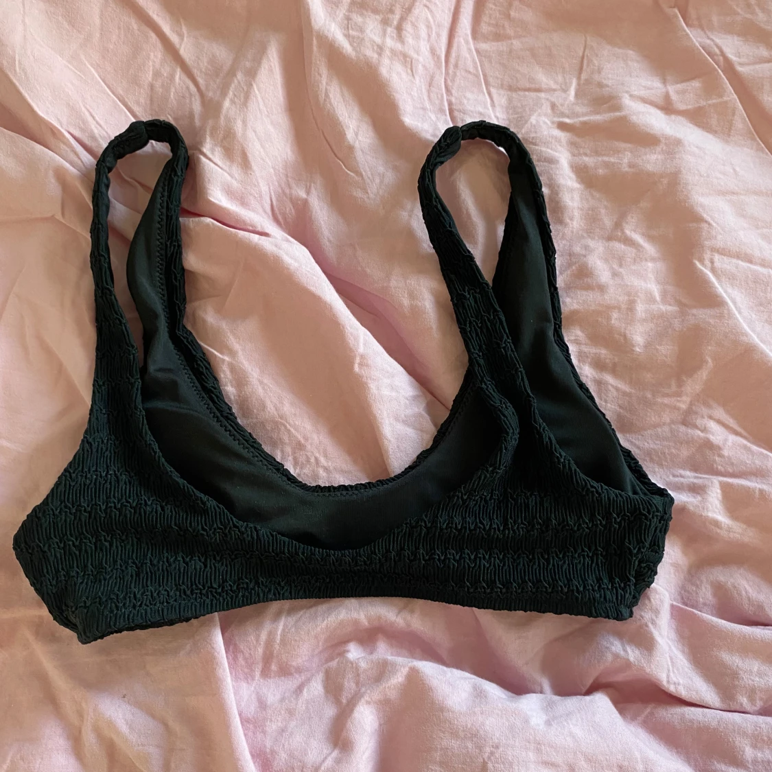 Svart bikiniöverdel från H&M i smockad modell med breda axelband. Toppens tyg är stretchigt och har en snygg struktur som ger en cool vibe. Perfekt för stranden eller poolen, enkel att matcha med olika underdelar.