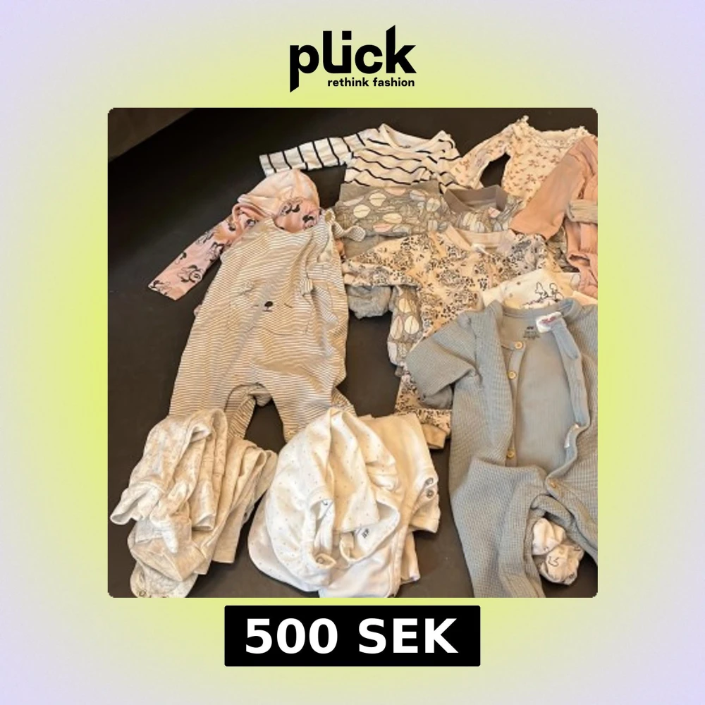 Säljer ett gäng mjuka babykläder i olika färger som beige, blå och brunt. Kläderna har bekväm passform.Perfekta för små barn som vill ha det skönt och fritt att röra sig. Kläderna från 1-3 månader från HM, Lindex, newbie, allt för 500kr