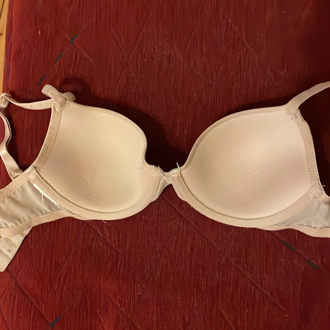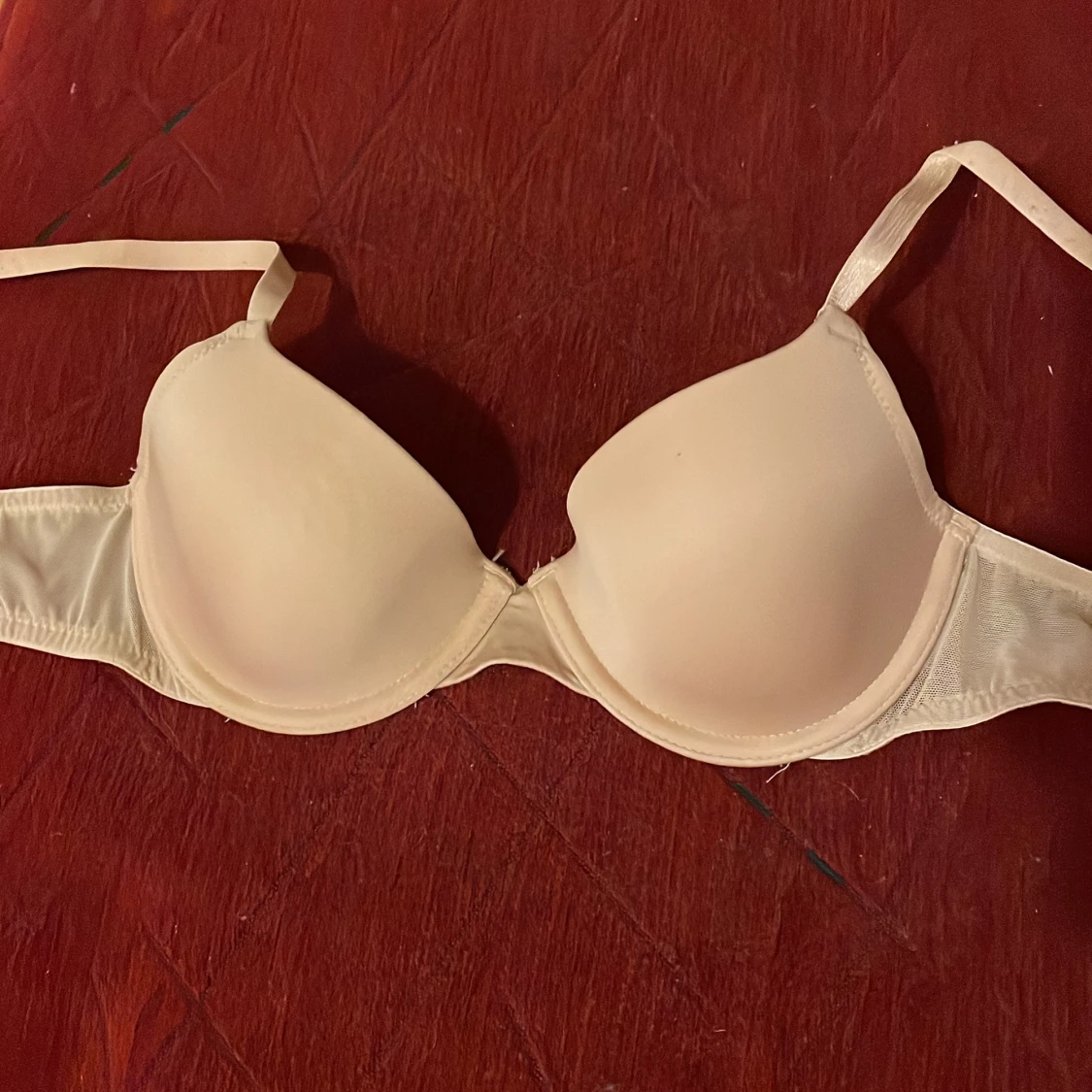 Säljer en beige bh med mjukt tyg och justerbara axelband. Den har en slät design och ger bra stöd. Perfekt för daglig användning, storlek 75A från HM.