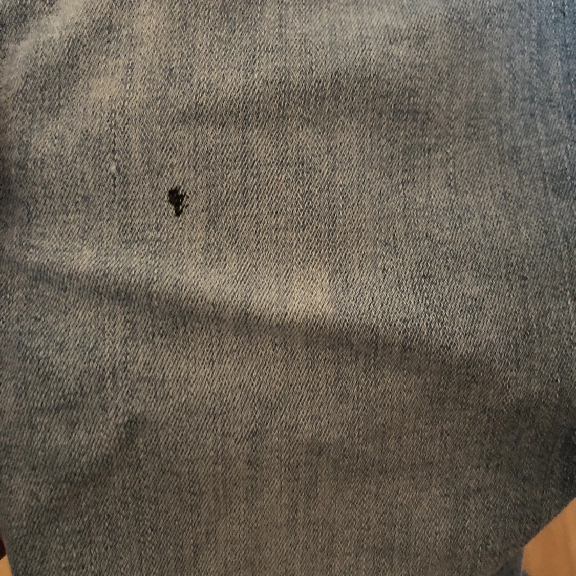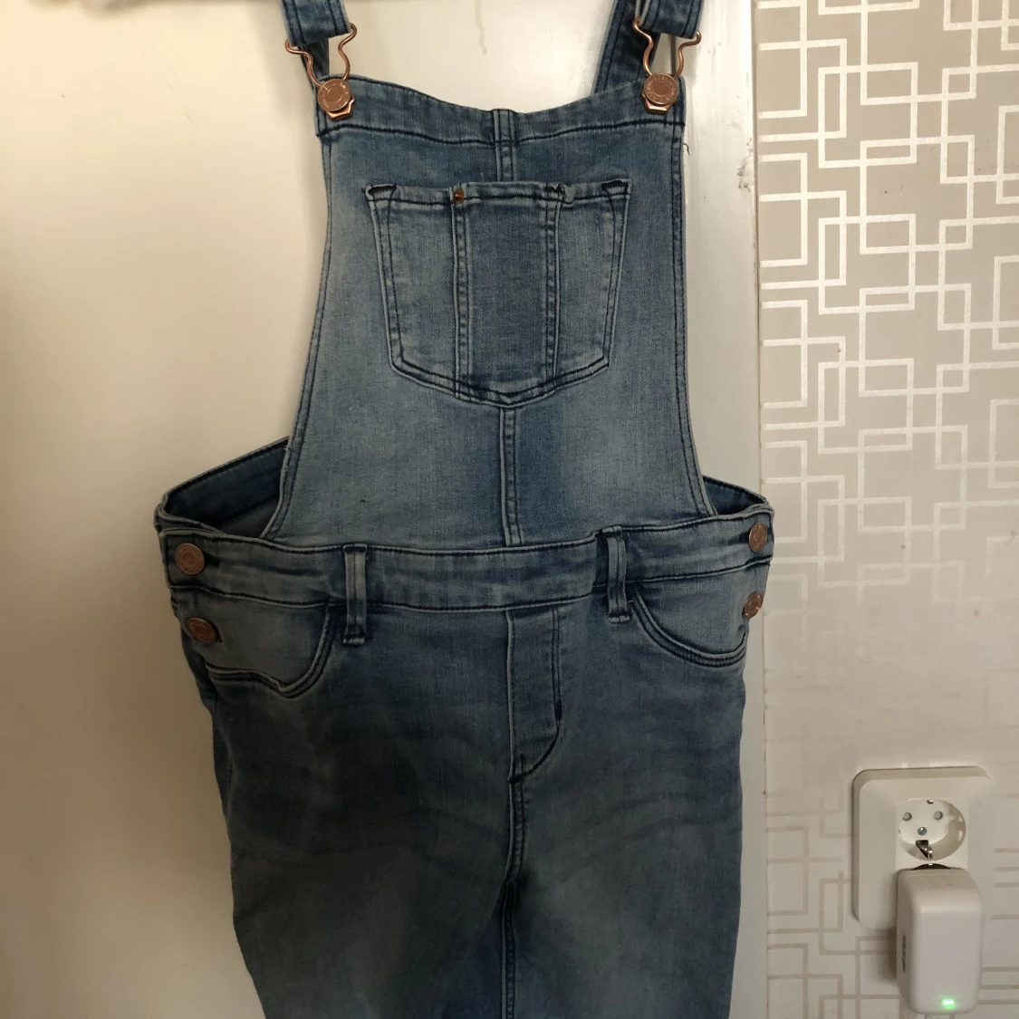 Jättefina hängselbyxor med hål i knäna ( ska vara så ) Finns en liten fläck vid knät se bild.