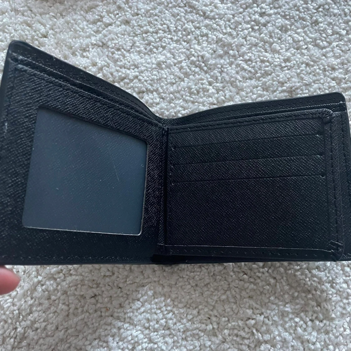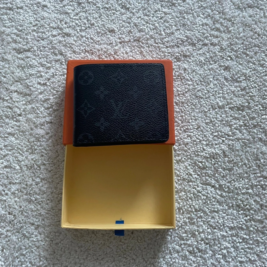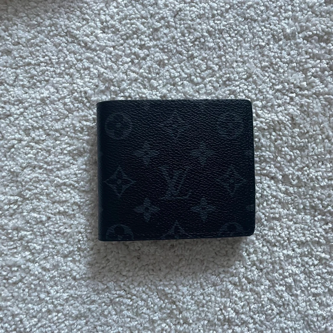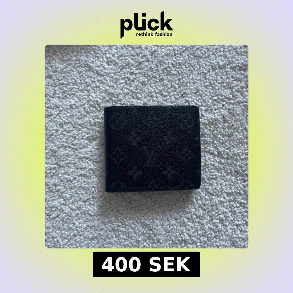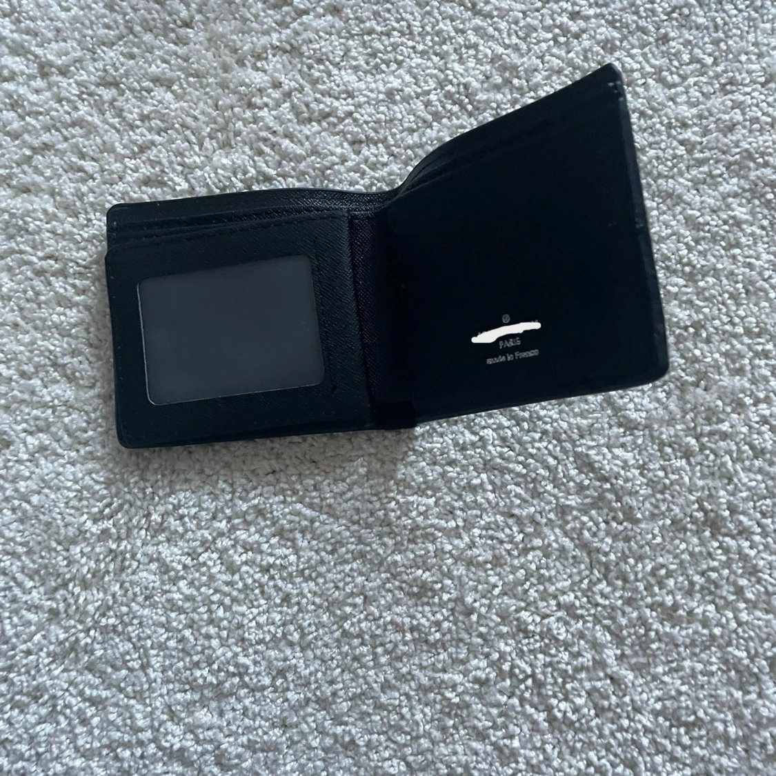Fin plånbok i svart skinn med klassiskt monogrammönster. Plånboken har flera kortfack, fönster för ID och stilren design. Perfekt storlek för fickan och helt oanvänd.