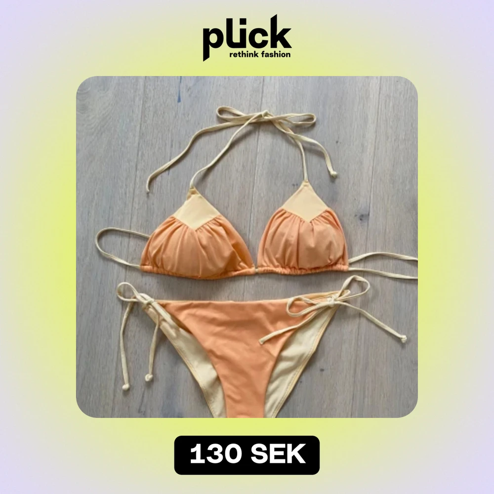 Säljer denna supersnygga bikinin från H&M, lapparna är bortklippta så det står ingen storlek men tror den är S.