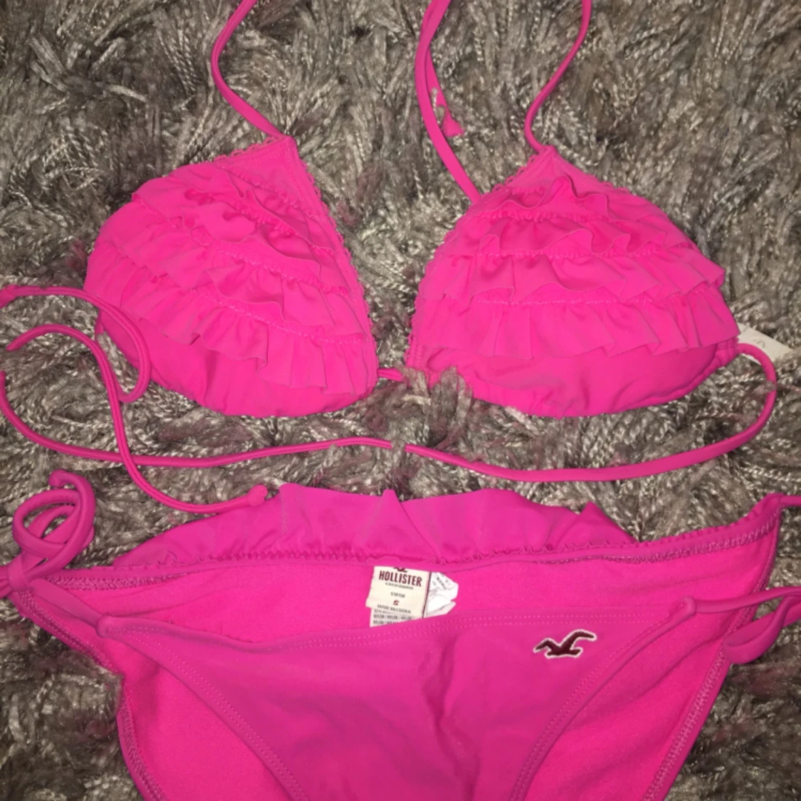 Bikini från hollister. 200 kr för båda delarna. S på både över- och underdelen. Jag har använt den några gånger i en sommar. Bra skick och självklart tvättad. Jag kan möta köparen i Göteborg men jag kan även skicka på frakt om köparen står för det. 🌸