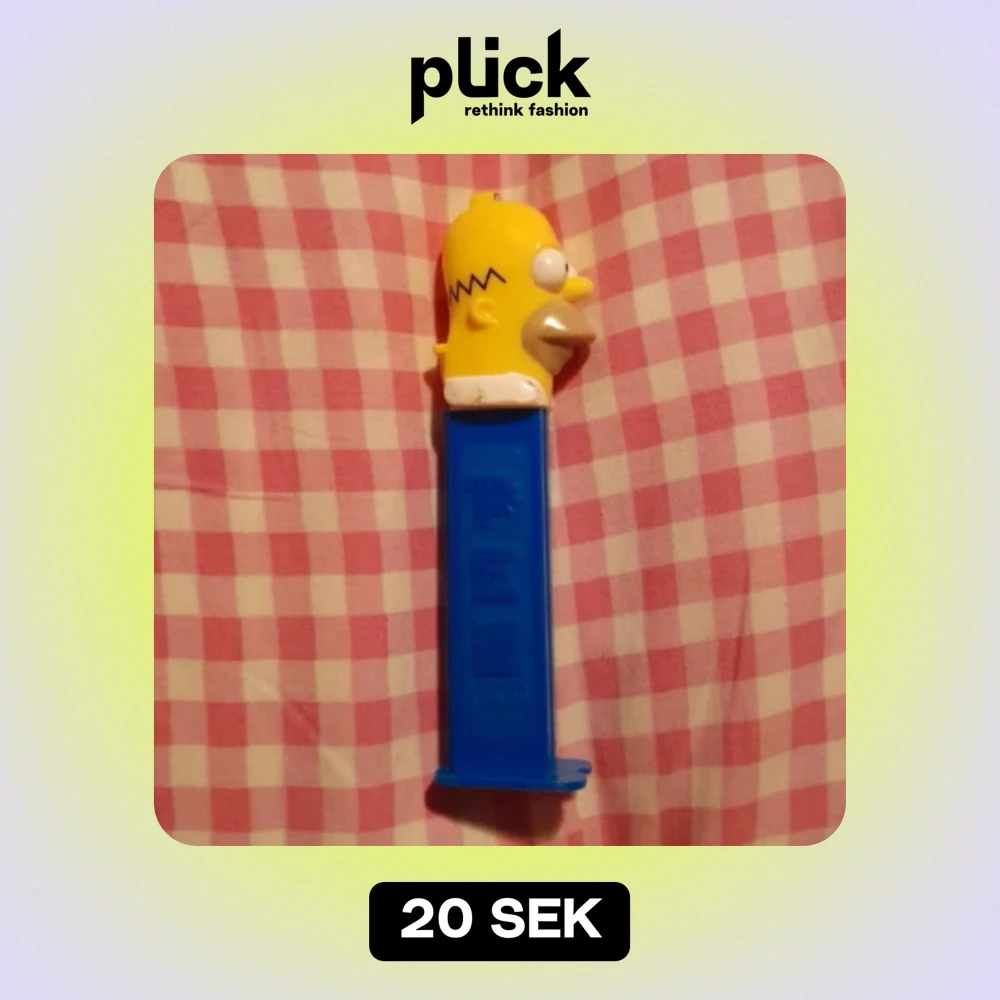 En PEZ dispenser med Homer Simpson från "The Simpsons". Lite färg har lossnat och man måste hålla i huvudet när man fyller på.