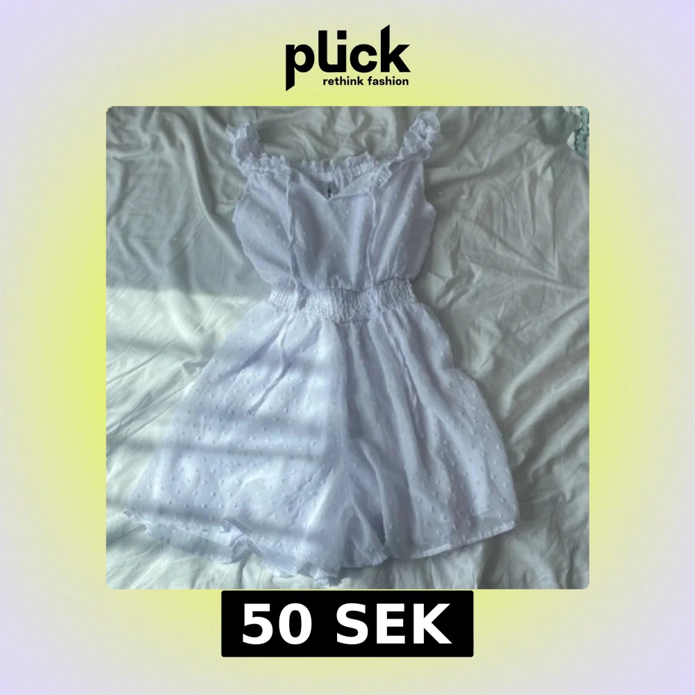 Tunt, luftigt tyg med små prickar i strukturen och bred resår i midjan för en bekväm passform. Perfekta för varma dagar och en söt, somrig look. Aldrig använd, katt finns i hemmet!