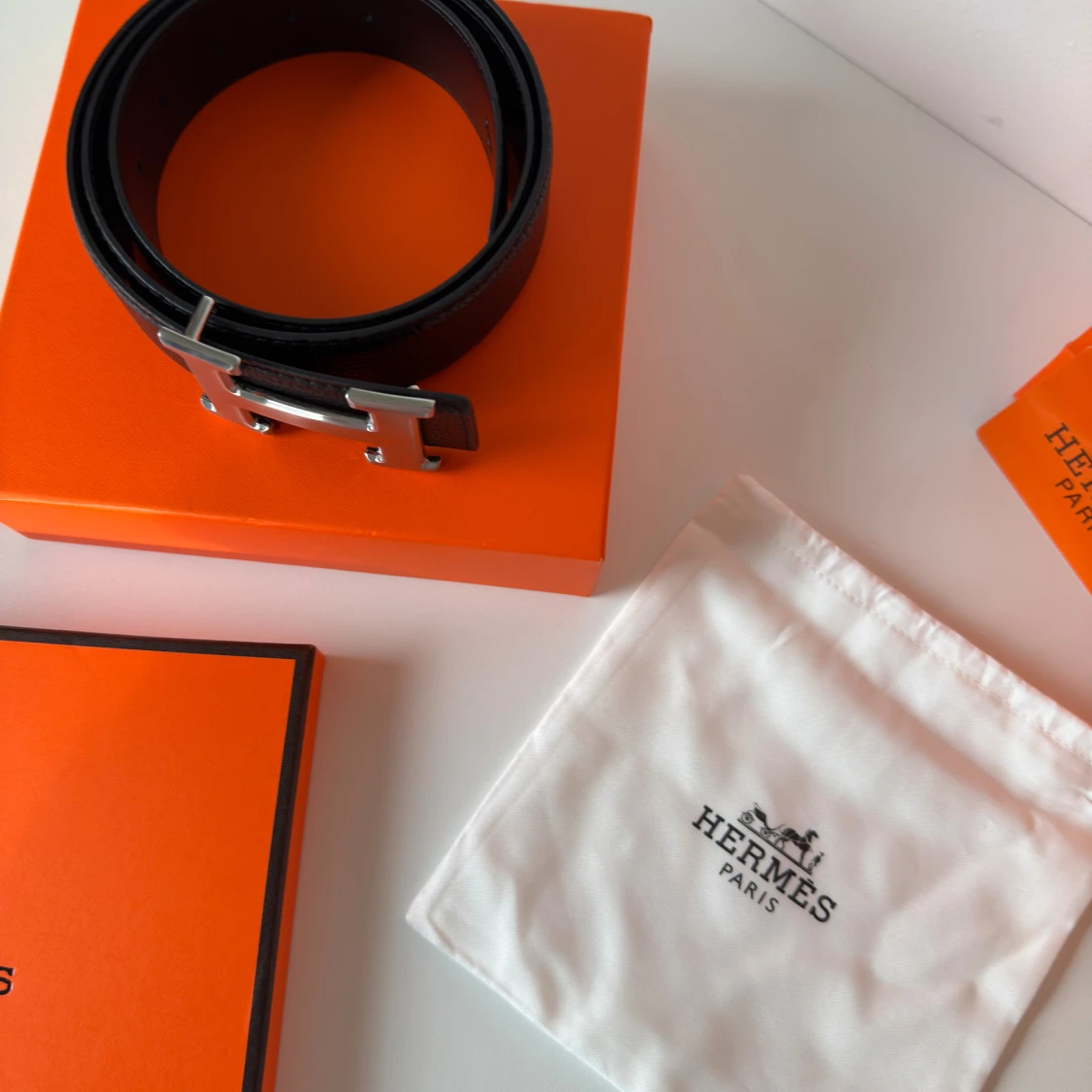 Exklusivt svart skärp från H med ikoniskt H-spänne i silverfärgad metall. Bältet är tillverkat i äkta skinn och har en stilren, klassisk design som lyfter vilken outfit som helst. Levereras med originalförpackning, dustbag och äkthetsbevis.