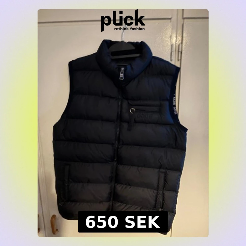 Skön och varm Hugo Boss dunväst. Storleken står som XL men skulle säga att den är mer åt L. Använd enstaka gånger. Nästintill nyskick. Pris kan diskuteras!