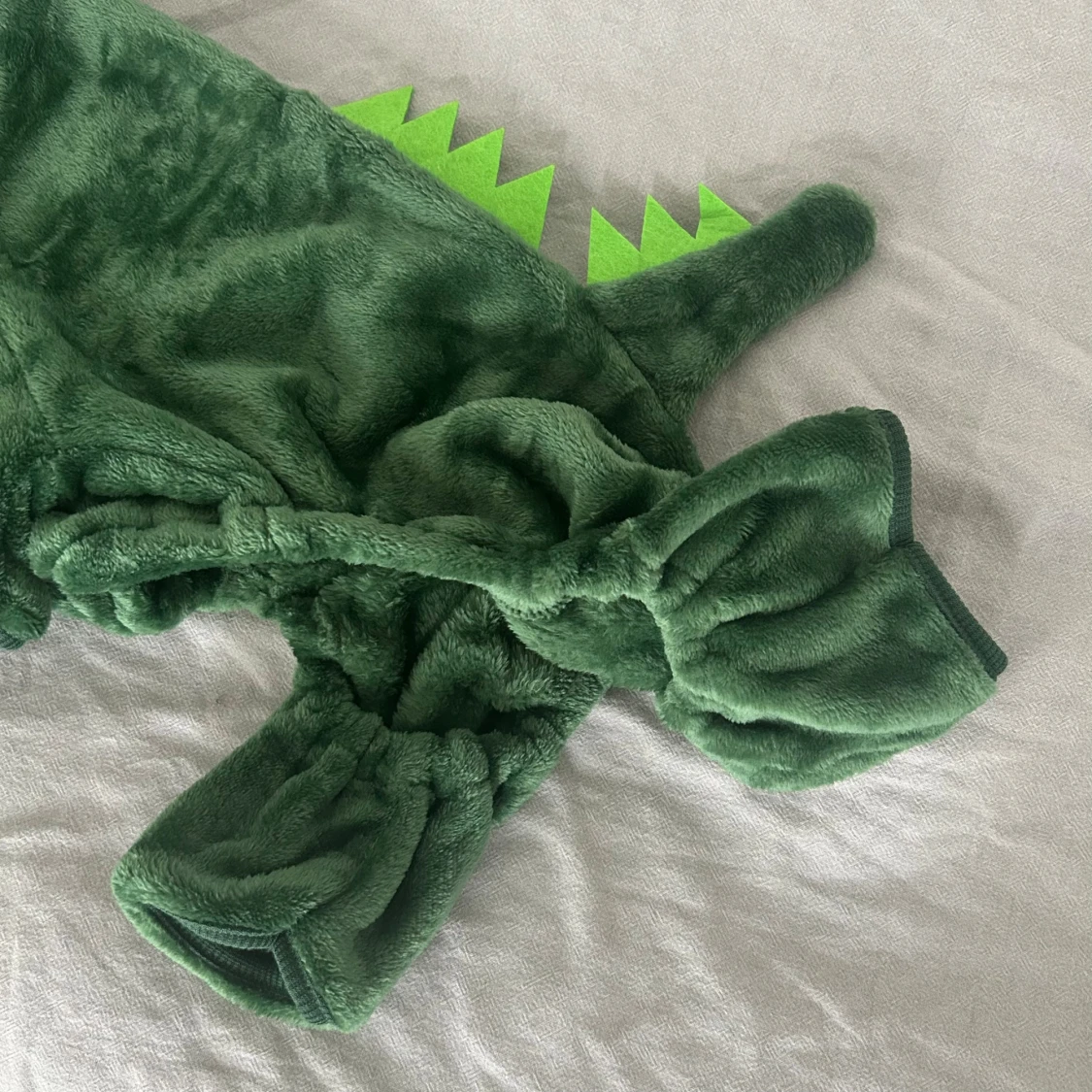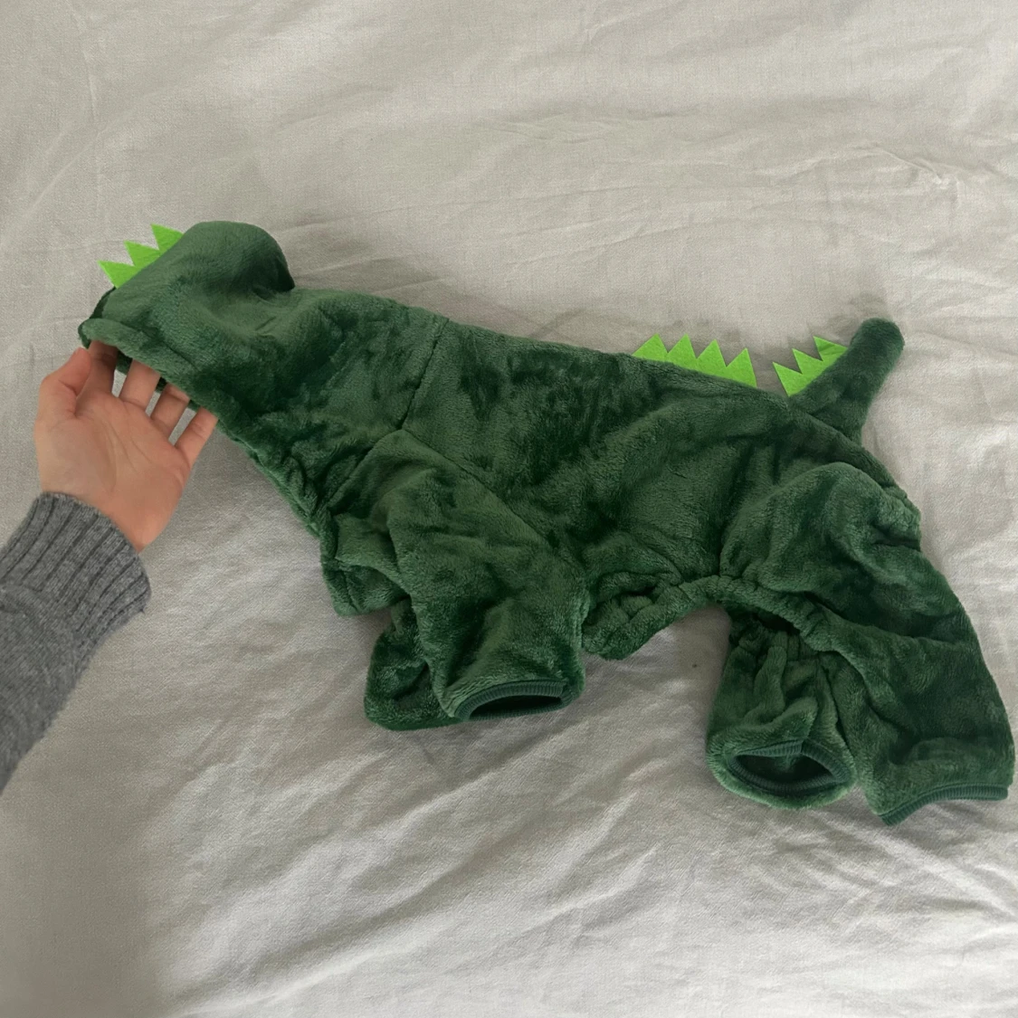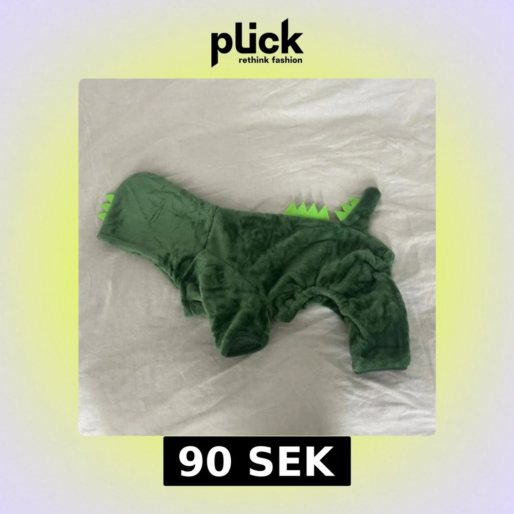 Supermysig grön hoodie till hund, gjord i mjuk fleece med urgulliga drakdetaljer och en liten svans. Perfekt för att göra din hund till en söt liten drake! Måtten är markerade i tabellen. Den är helt oanvänd - köpte fel storlek och hann inte returnera.