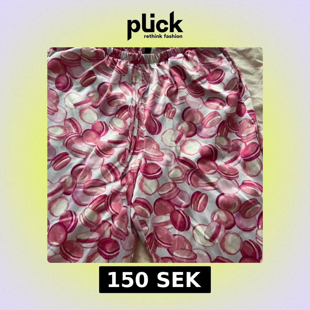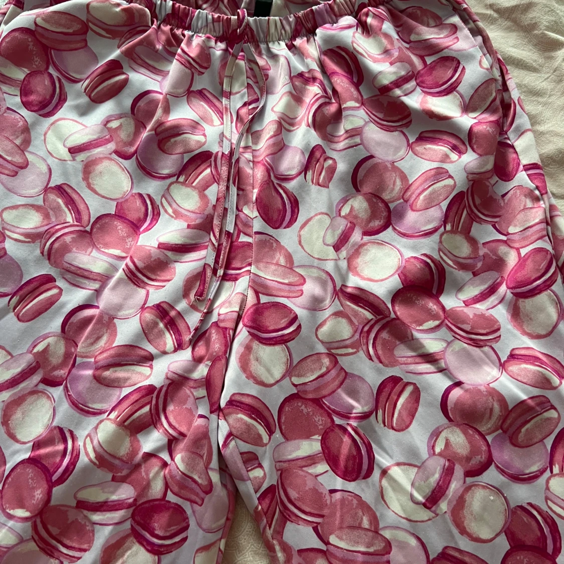 Pyjamasen är använd men i fint skick från hunkemöller med macaroons på. Tröjan är i Xs men är väldigt oversize, byxorna är i S men skulle även där säga ganska oversize. Men perfekt för att vara en pyjamas. Priser gäller för båda delarna