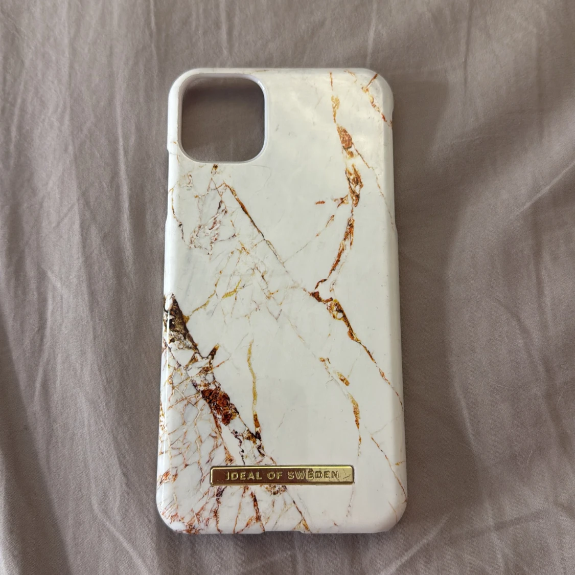 Snyggt mobilskal från Ideal of Sweden med marmormönster i vitt och guld. Jätte fint skick, ser oanvänt ut! iPhone 11 Pro Max