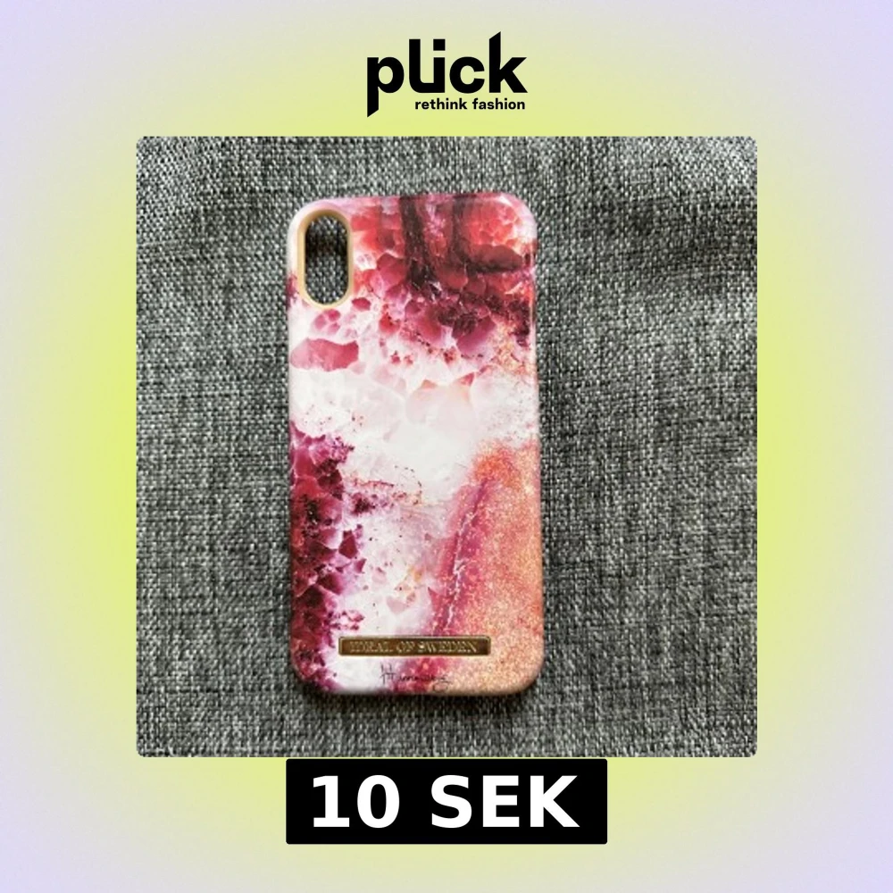 Säljer ett snyggt mobilskal från iDeal of Sweden med marmorliknande mönster i rosa, vinrött och inslag av guld för iPhone XR. Skalets yta är slät och har en metallisk logga längst ner. Passar perfekt för dig som vill ha en trendig accessoar till mobilen.