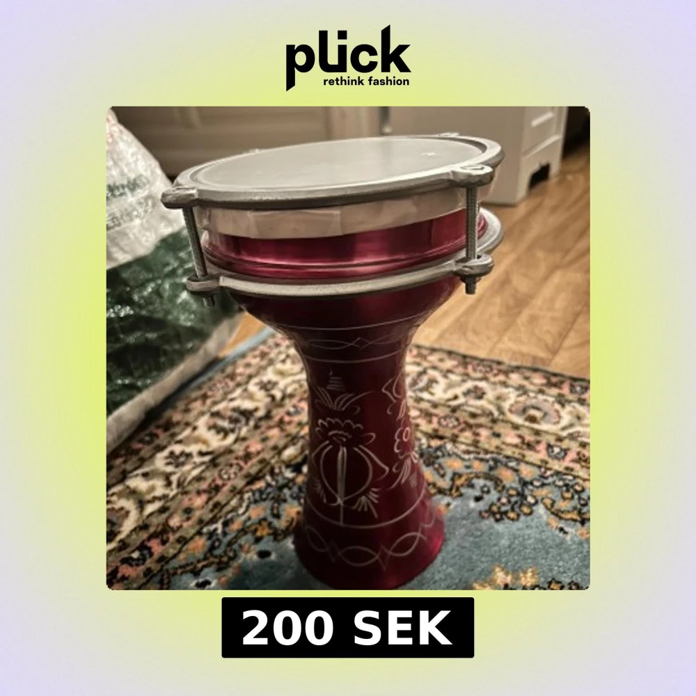 Bilderna visar en röd dekorerad darbuka, ett slagverksinstrument, och ingen bok. Perfekt för dig som vill skapa rytmer och musik med vänner eller på egen hand.