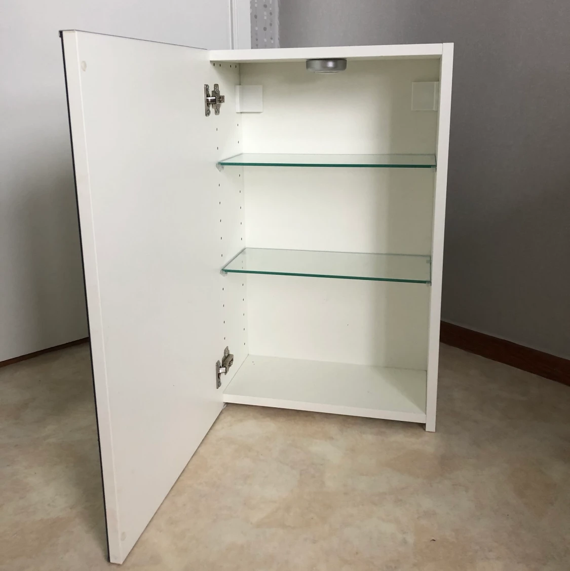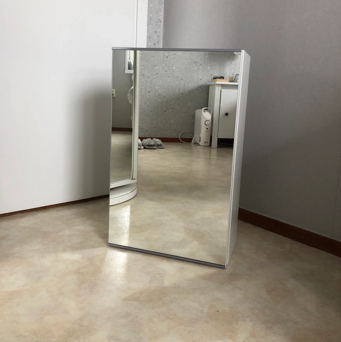 Spegel med förvaring💕 Det tillkommer två glasskivor som funkar som hyllor och vart de är placerade går att justera! 40cm bredd, 64cm höjd och 21cm djup💞 pris kan diskuteras!