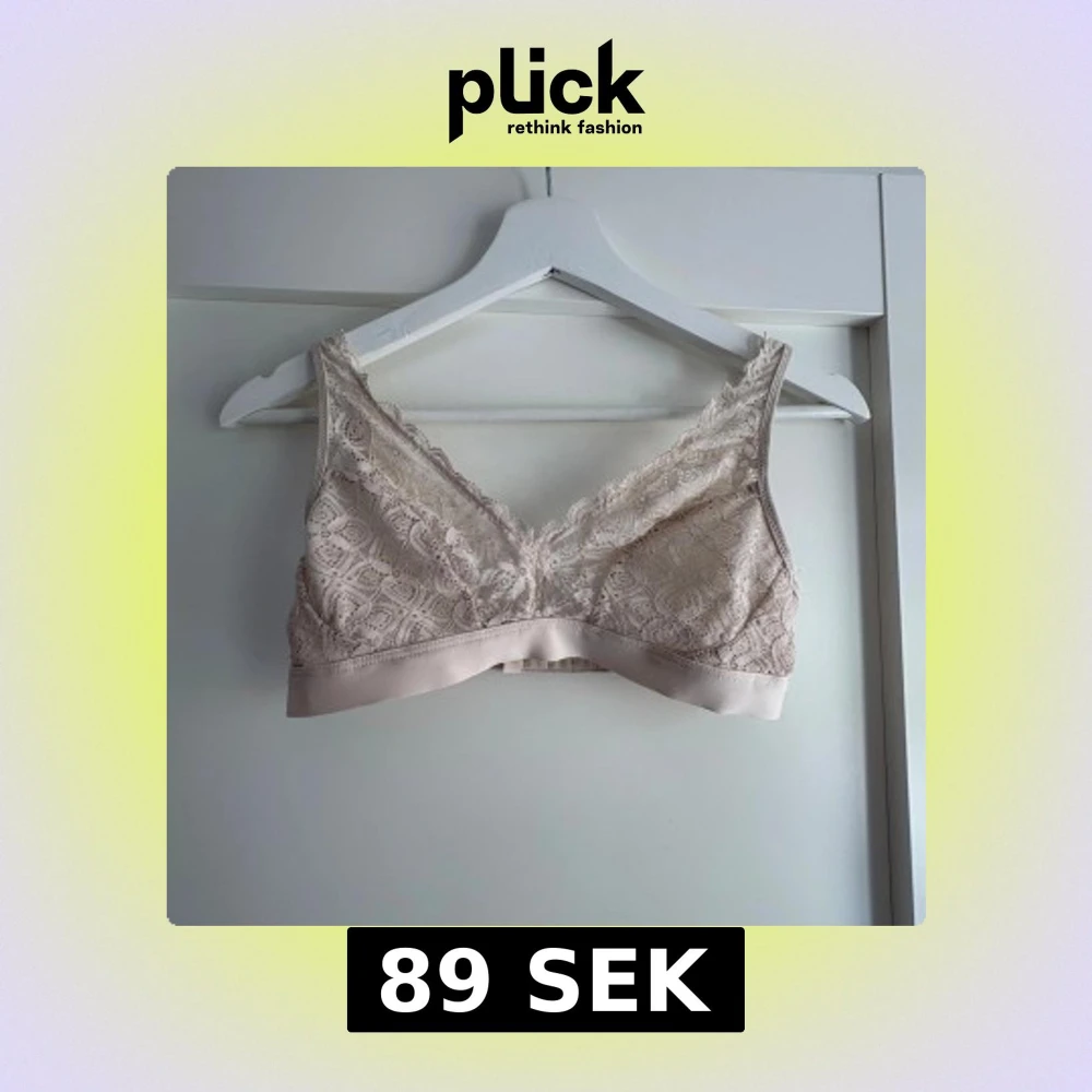 Supersöt beige bralette från Intimissimi med v-ringning och bred spetskant. Justerbara axelband och hakknäppning bak. Toppens spets har ett detaljerat mönster och mjuk känsla, perfekt för en chill och snygg look. Passar XS