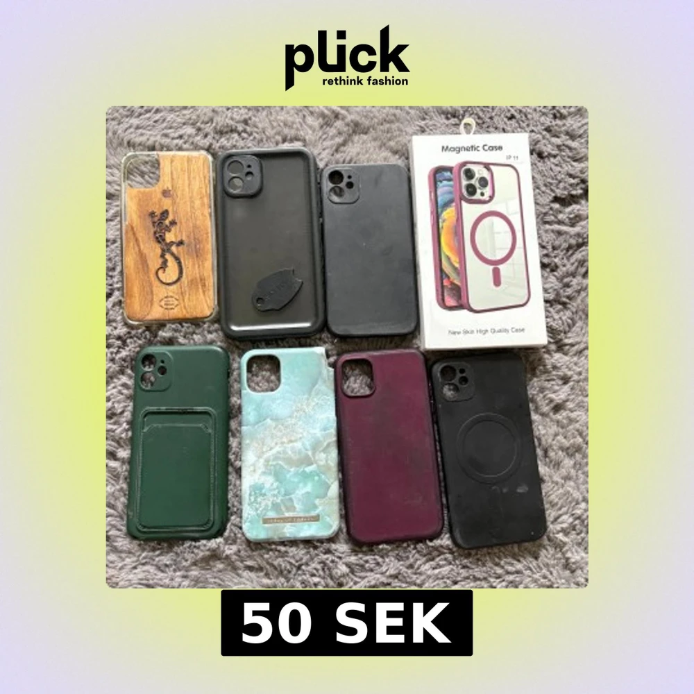 Massa iPhone 11 mobilskal, några är trasiga som du ser på de sista bilderna. Bild 2 är alla magnetiska. Den bredvid den beiga skalet med ödlan är vattentät. Jag säljer för 50 kronor per skal