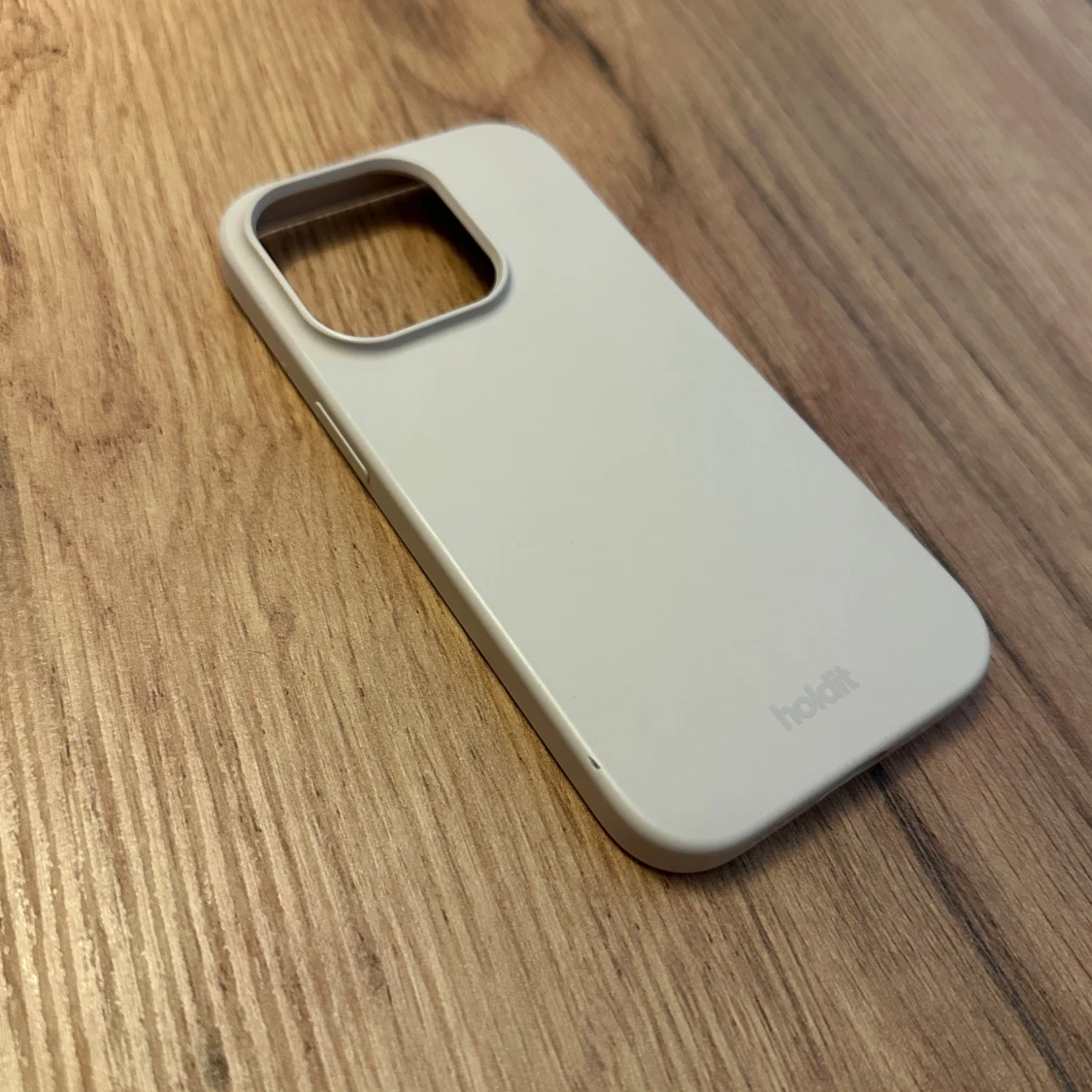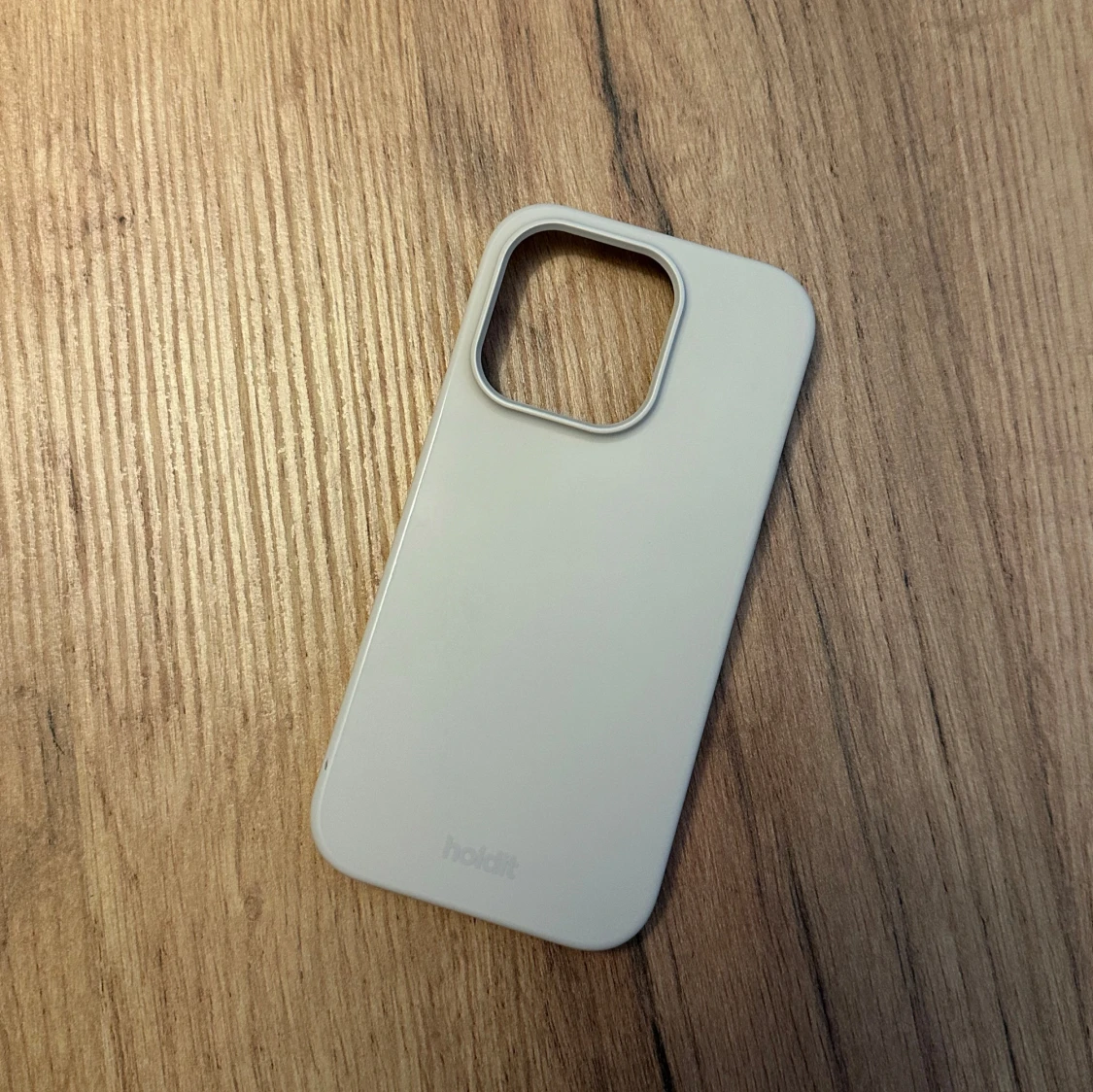 Säljer ett beige skal från Holdit för iPhone 14 pro, i fint skick! Finns två små märken på, se bild, men inget som stör