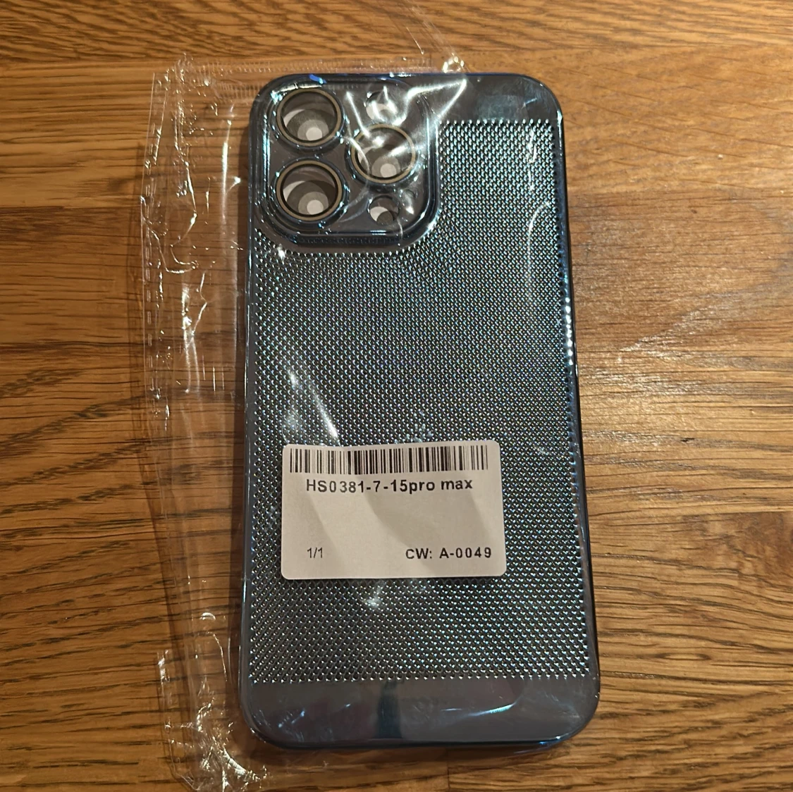 Helt nytt skyddsskal för iPhone 15 Pro Max. Snyggt mönstrad baksida, levereras i obruten förpackning. Perfekt passform för kameramodulen och knappar. Inga synliga defekter eller slitage, redo att användas direkt.