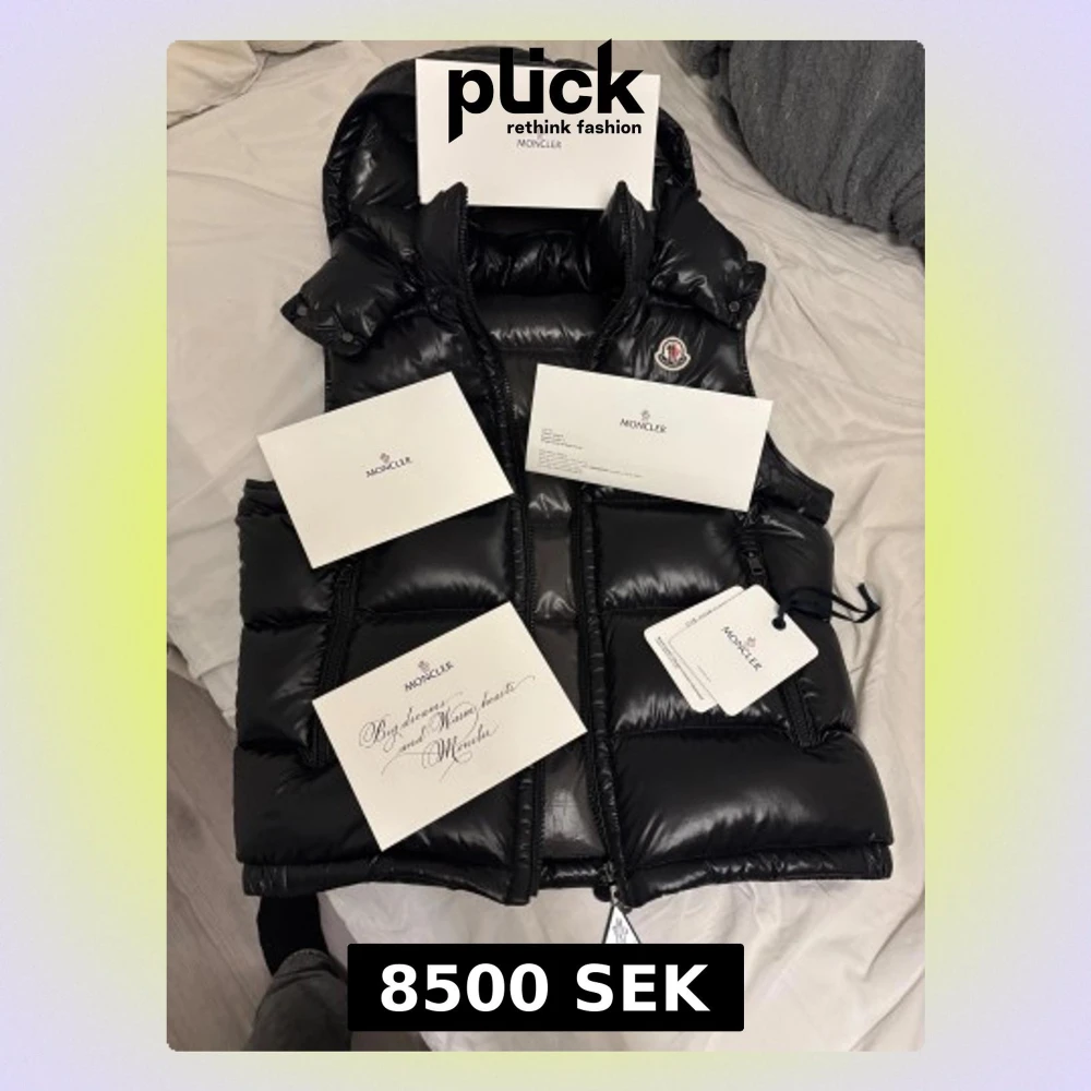 Säljer en svart, glansig dunväst från Moncler i modell Bormes Gilet, storlek M/L. Skick 10/10 nästan aldrig använd, hör av er vid funderingar. ÄKTA kontakta för mer bevis 😁