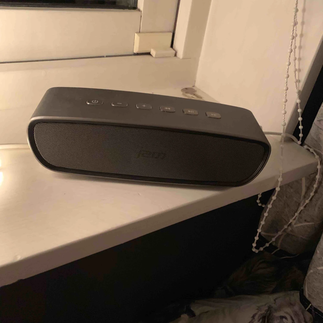 Smidig högtalare bra ljud knappt använd Laddas med mini - USB, finns utag för hörlurar också! Knappar uppepå. Fungerar felfritt