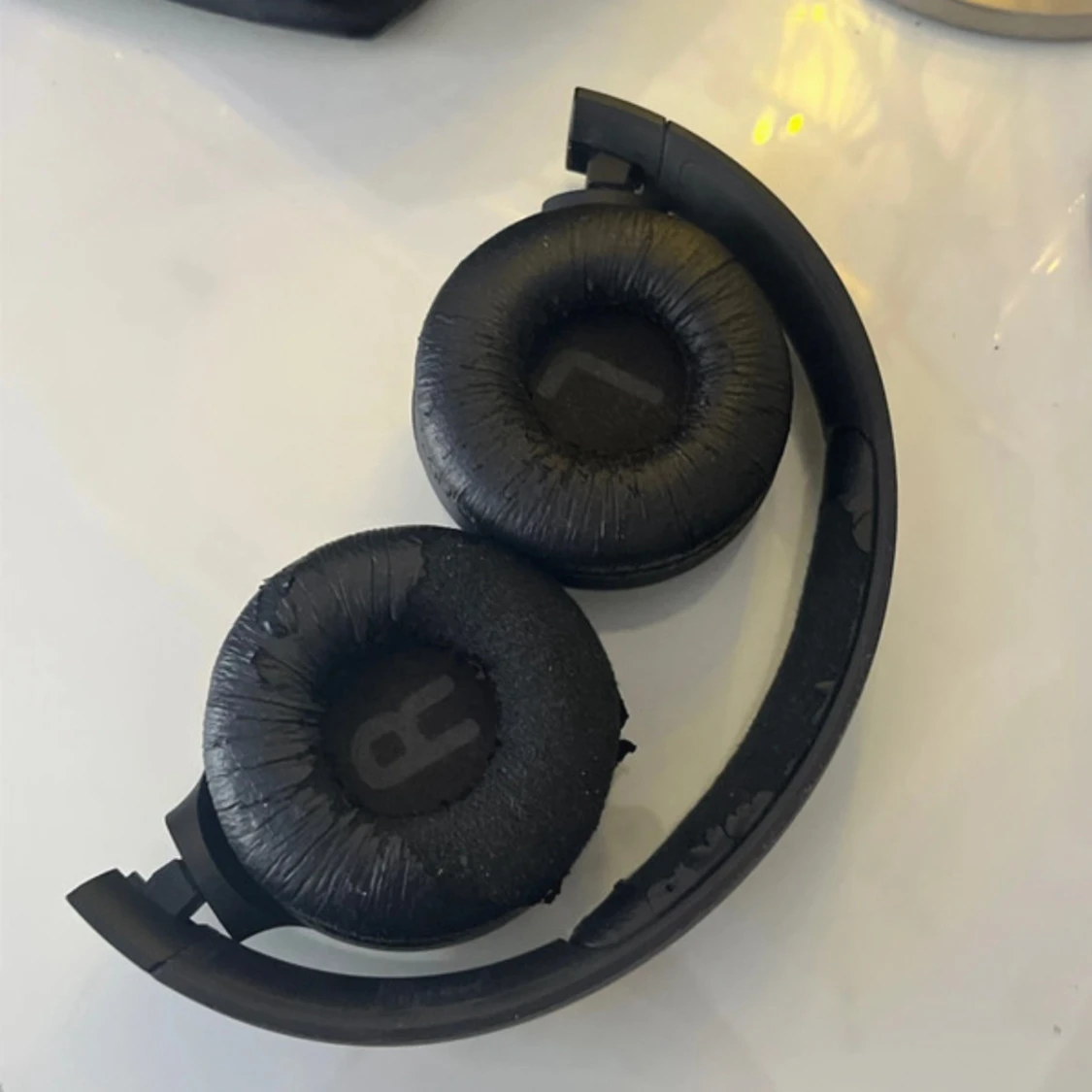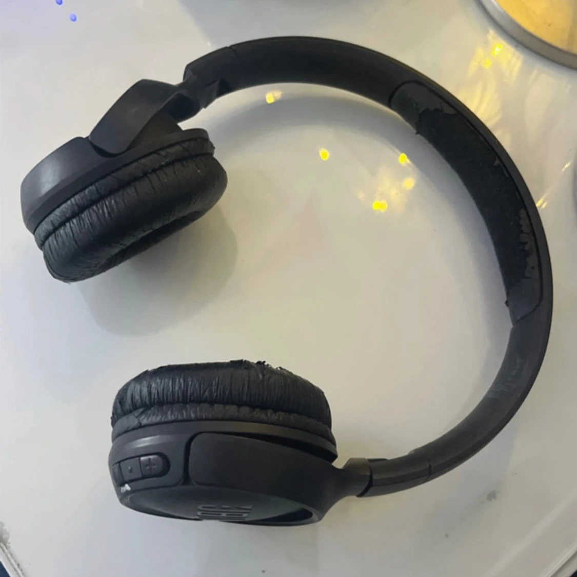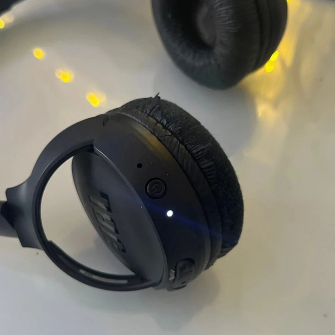 Säljer ett par Jbl hörlurar, Lite av det mjuka skinnet har lossnat av men man kan byta puffar om man har. Jag använde dem förut och ljudet funkade jätte bra men fick en ny mobil och har tyvärr inte kunnat koppla dem genom bluetooth, det enda dem gör är att lysa blått. Så vet inte om de är problemet med min mobil eller inte. men kommer ihåg att dem hade mycket bra ljud!💓 Laddaren kommer med!