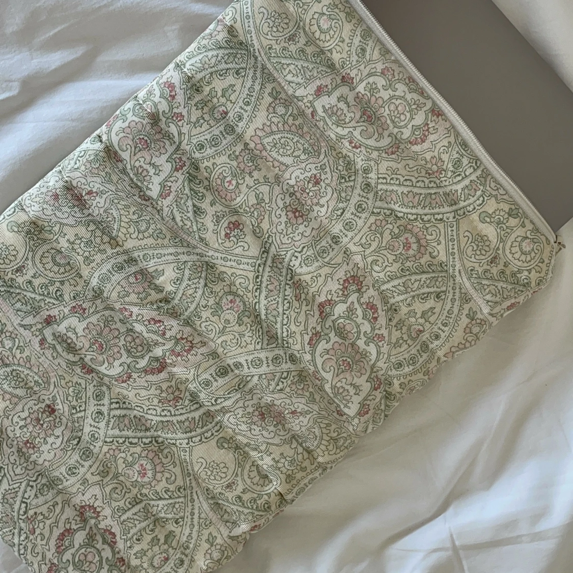 Vaderat datorfodral av upcyklat tyg (naturligtvis maskintvättat innan användning). Fodralet är vaderat med ett 20 mm tjockt mellanlägg. Blixtlås på kortsidan. Passar 13” dator (macbook air bl.a). 💞KVAR💞 Skriv vid frågor! 🌷☀️✨