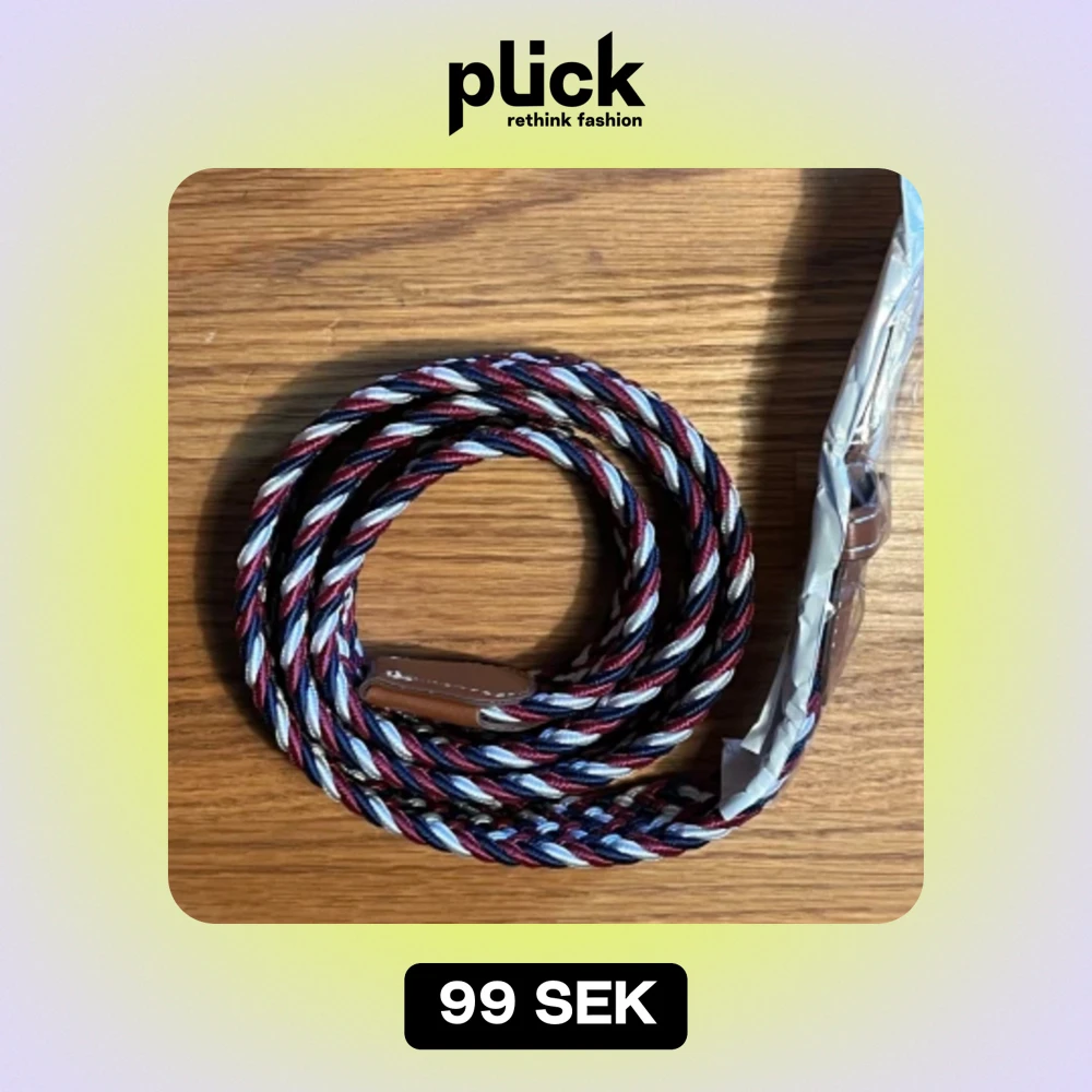 Säljer det här nya och oanvända flätade bältet. Hela bältet bortsett från metallbiten är ca 95 cm långt, men kan stretchas ut till en större storlek. Pris: 59 kr