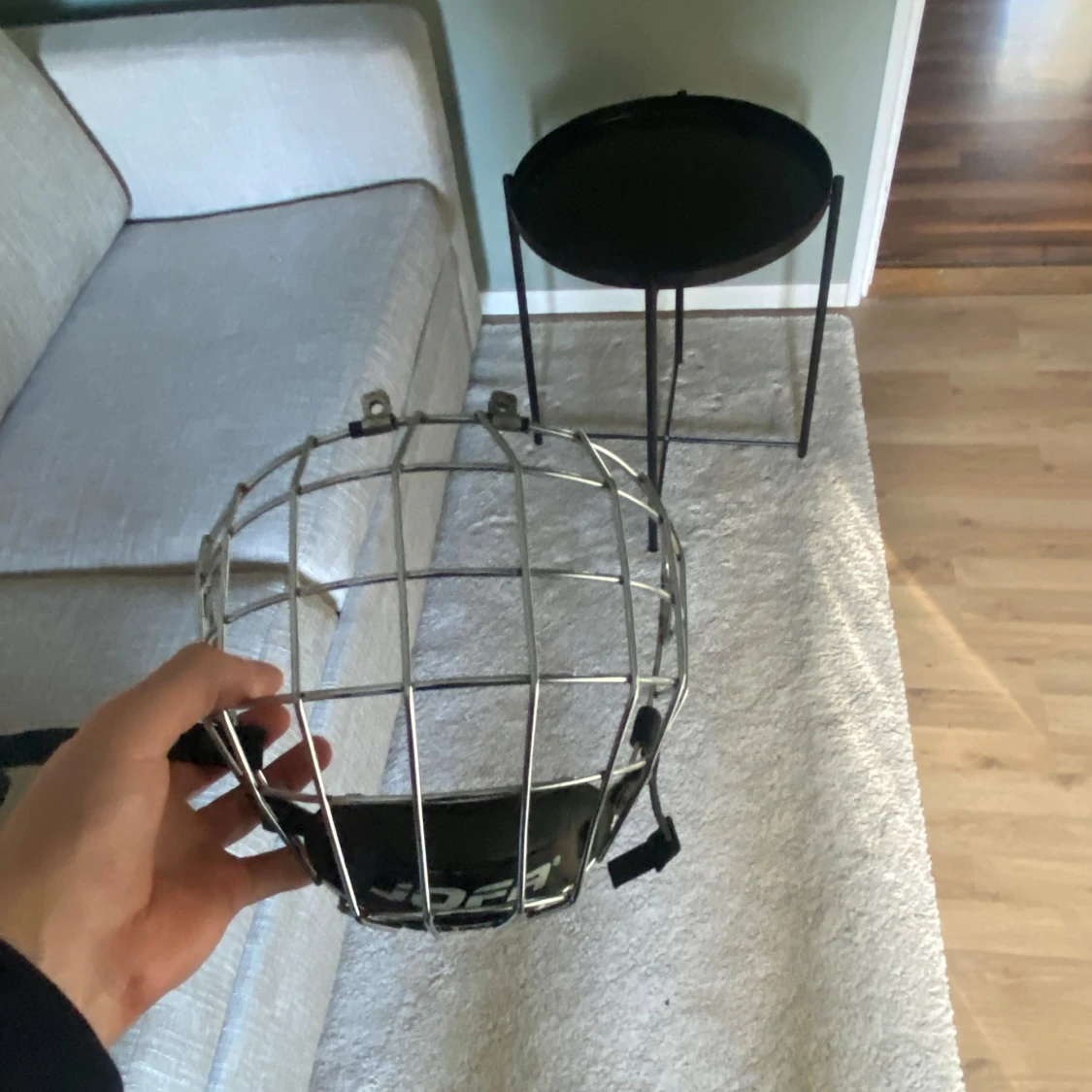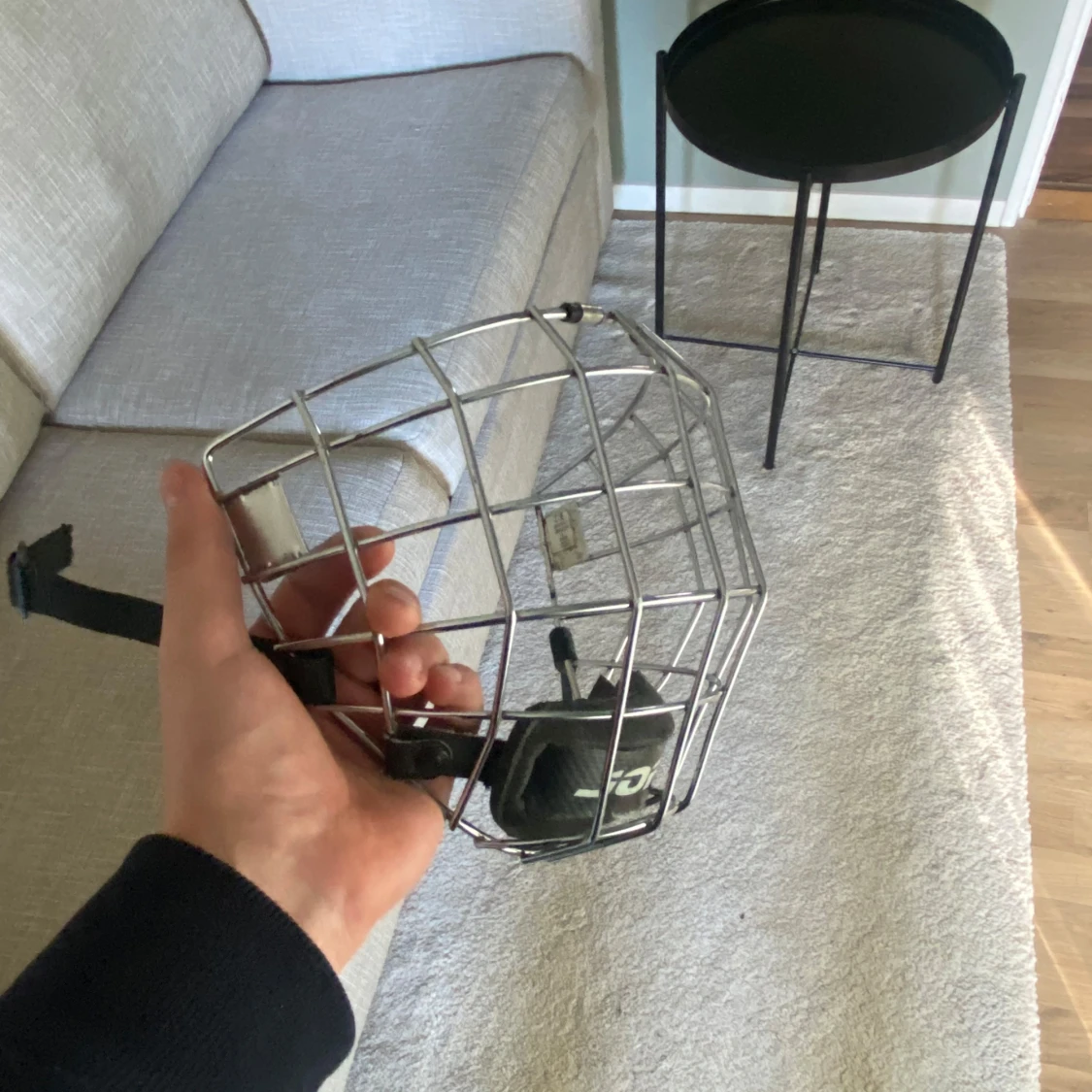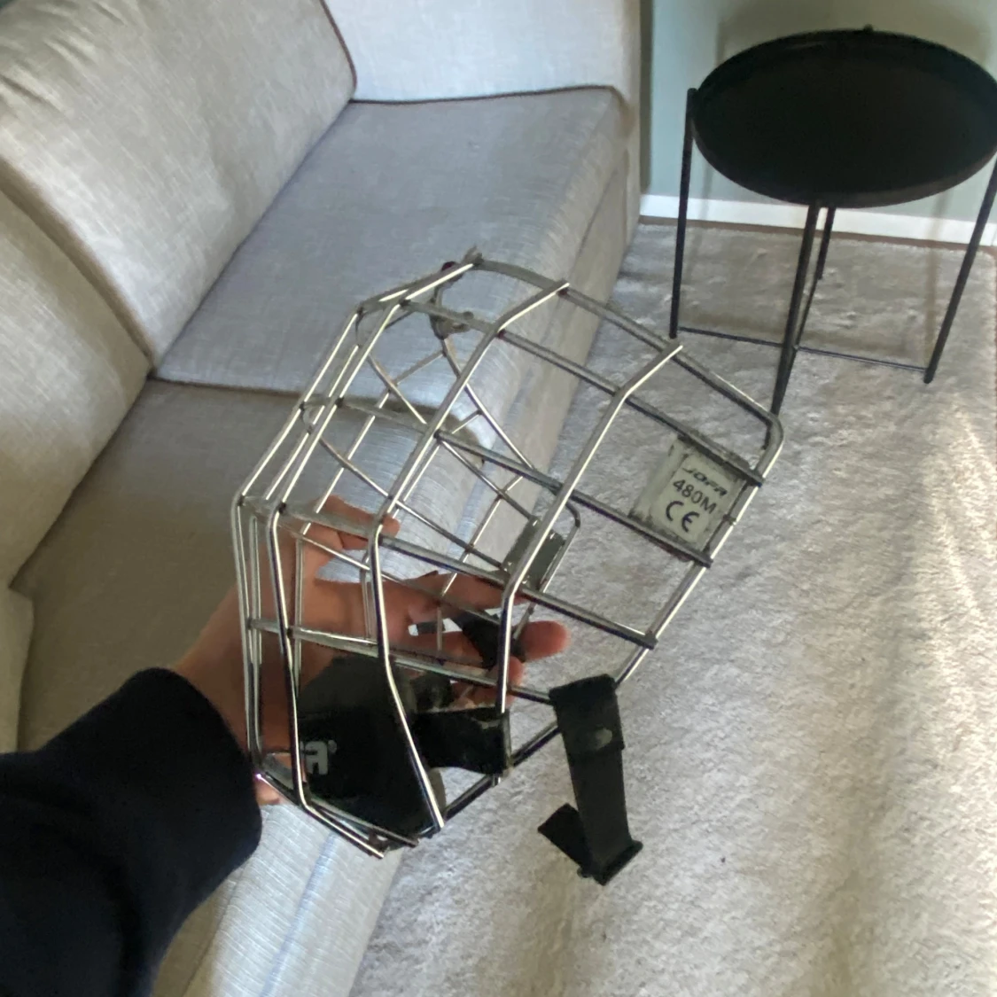 Säljer ett klassiskt JOFA hockeygaller modell 480M i silverfärgad metall med svart hakskydd och justerbara remmar. Perfekt för dig som vill sticka ut lite extra på isen. Passar hjälmar med fästen för galler.