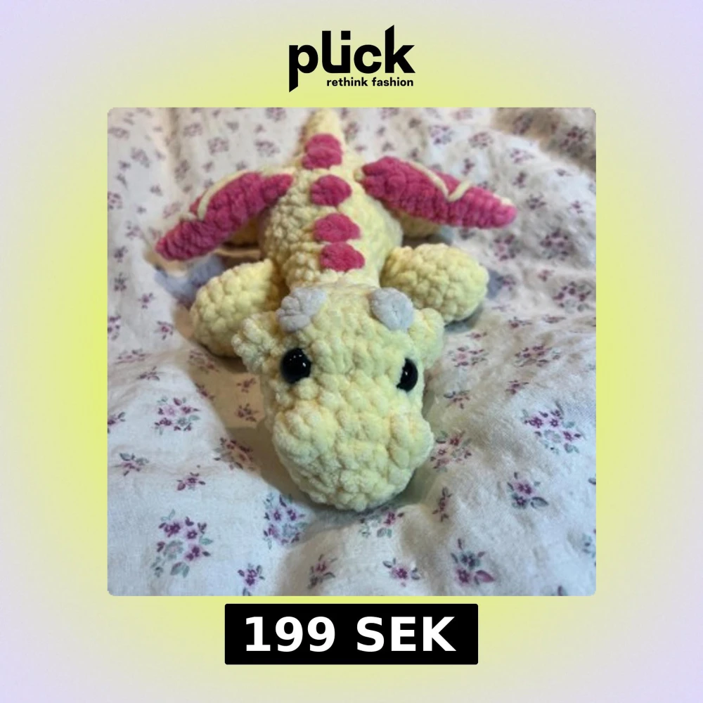 Nu kommer 2 till virkade drakar, denna är i färgen ”jordgubbslemonad” tyckte personligen att denhär färgkombinationen var👌🩷💛 !Dessa innehåller säkerhetsögon som inte rekommenderas för barn under 3 år!