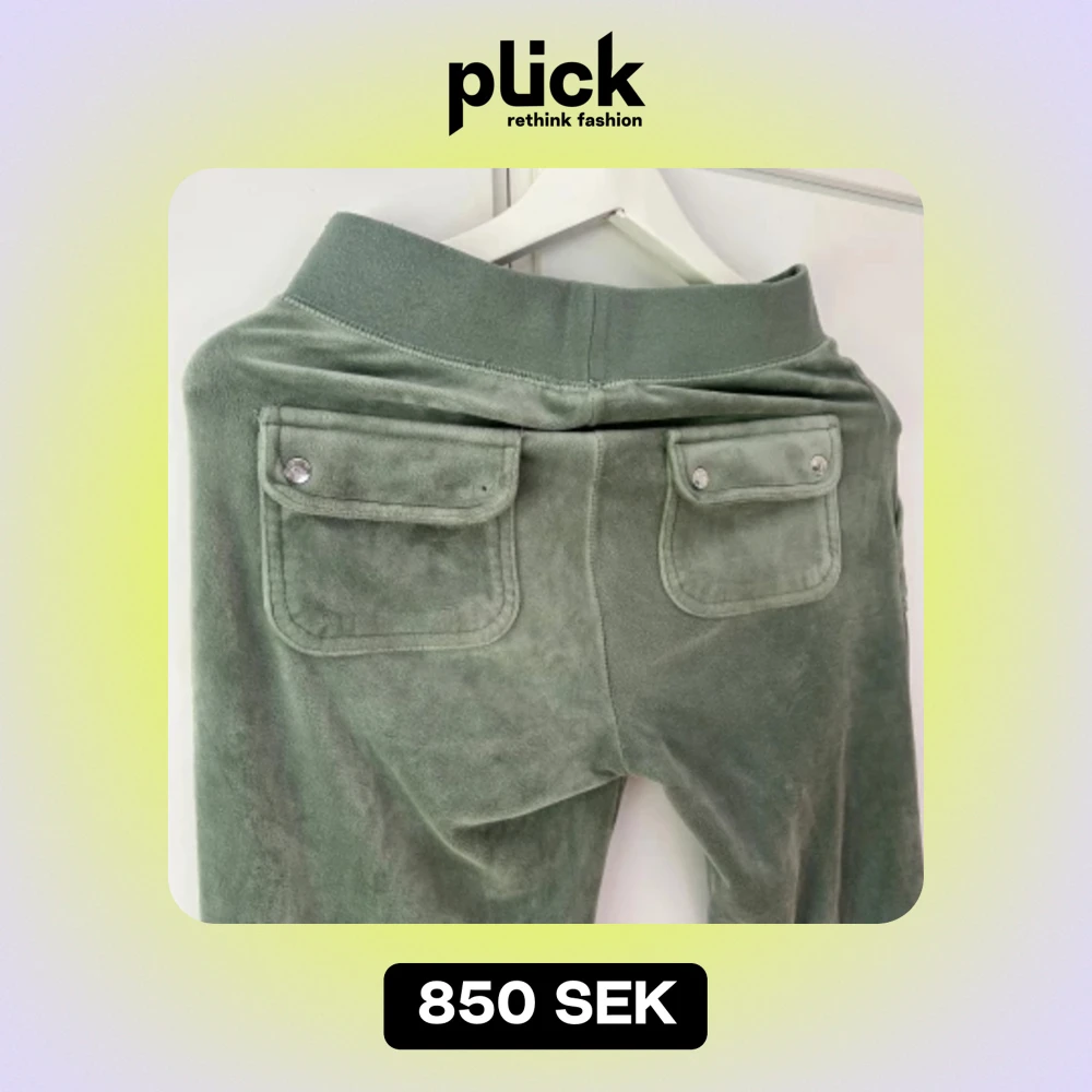 Jätte fint juicy sett i färgen chinos green, saknar en knapp på ena backfickan men annars jätte bra skick💕💕Sparsamt använda. Byxor:xs Tröja: s, men passar en xs