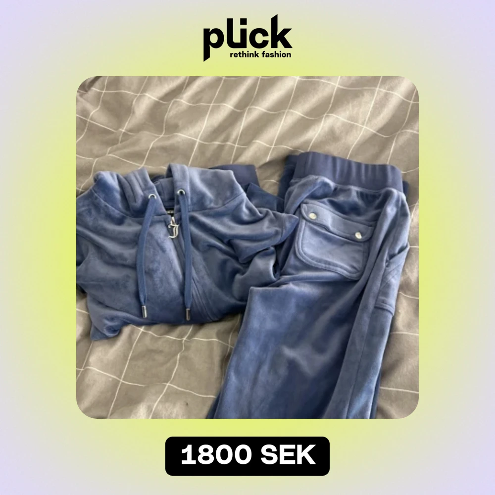 Säljer mitt juicy couture set för att de tyvärr inte kommer till användning 💗 stolek xxs i byxorna och xs i tröjan🥰 skicket är i nyskick då de endast är använda få antal gånger💗🙏 i färgen grey blå. Priset kan diskuteras!