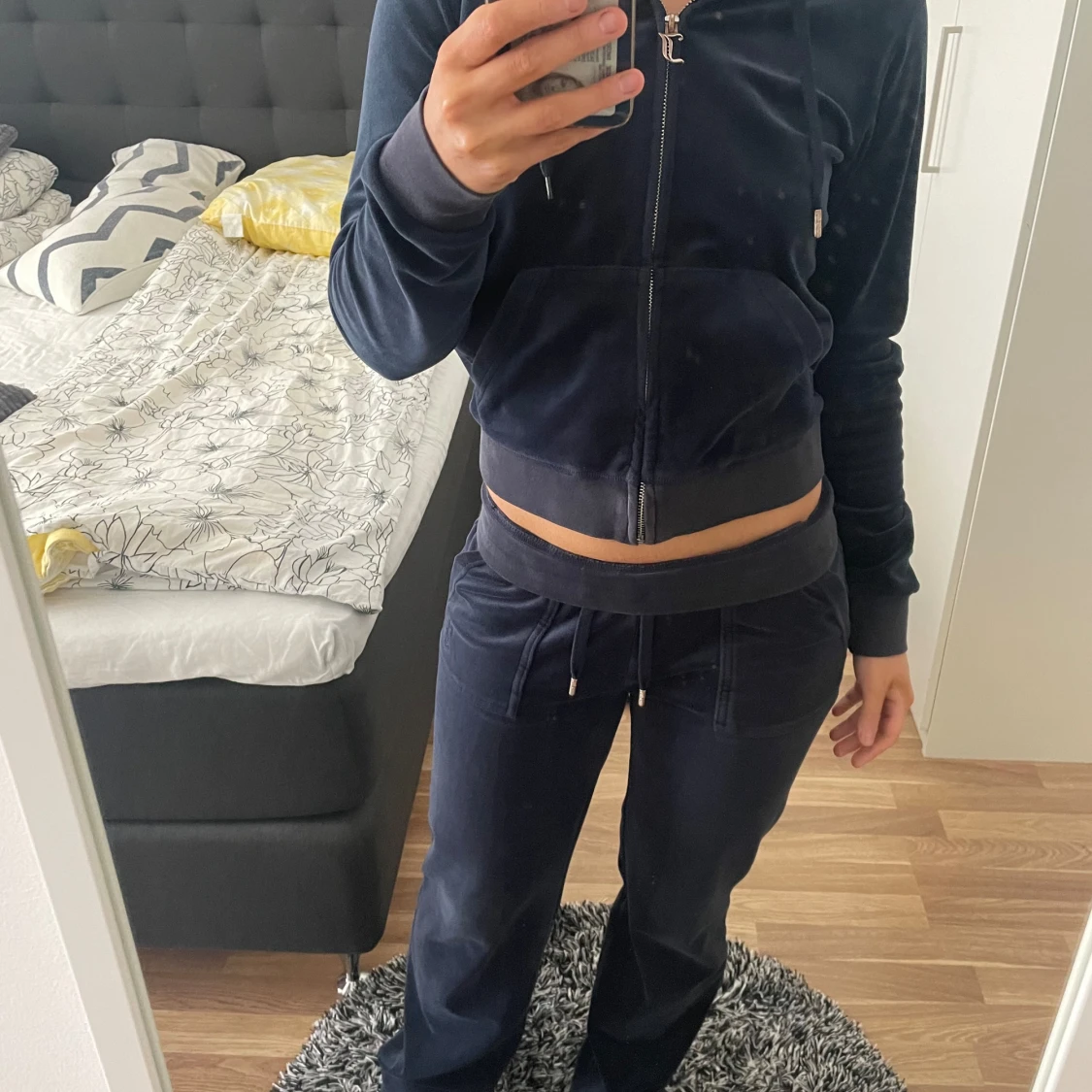 Säljer mitt marinblåa juicy couture sett då det inte kommer till användning längre. metallgrejen på ena snöret har lossnat. Pris kan diskuteras.💕