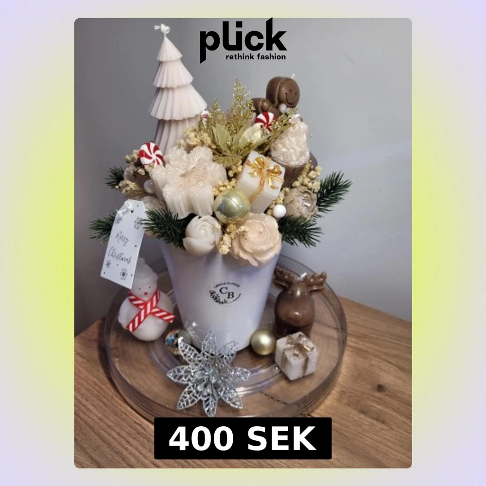 En fin present till någon allt är gjord av vax som blommor julgran, julklapp peppakaka. Doft av peppakaka samt en riktig kruka