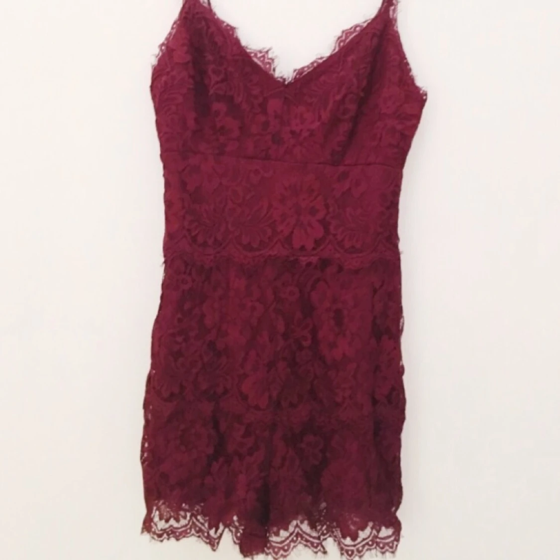 Vinröd jumpsuit med spetsdetaljer. Från Topshop, aldrig använd!