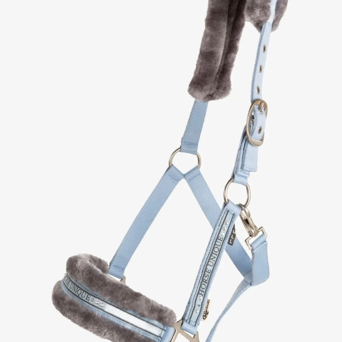 Ljusblå och grå grimma från Källquist Equestrian, storlek Ponny. Helt i nyskick med lappen kvar. Kostar 149 kr ny. Skickar även med ett tillhörande grimskaft, även de helt oanvänt 😊100 kr eller bud