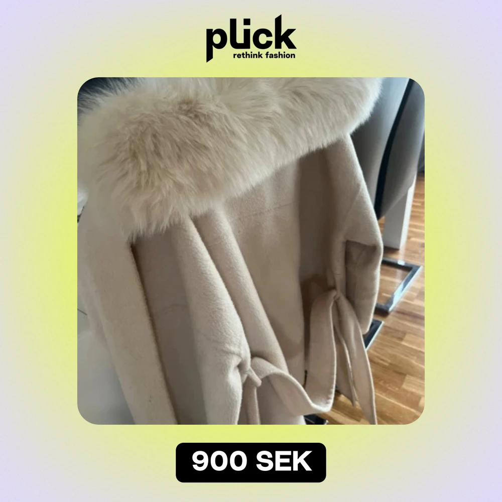 Alicia coat off-white storlek M. Köpt från furstockholm, nypris 1600kr. Kappan har även äkta päls. Materialet på kappan är ull.