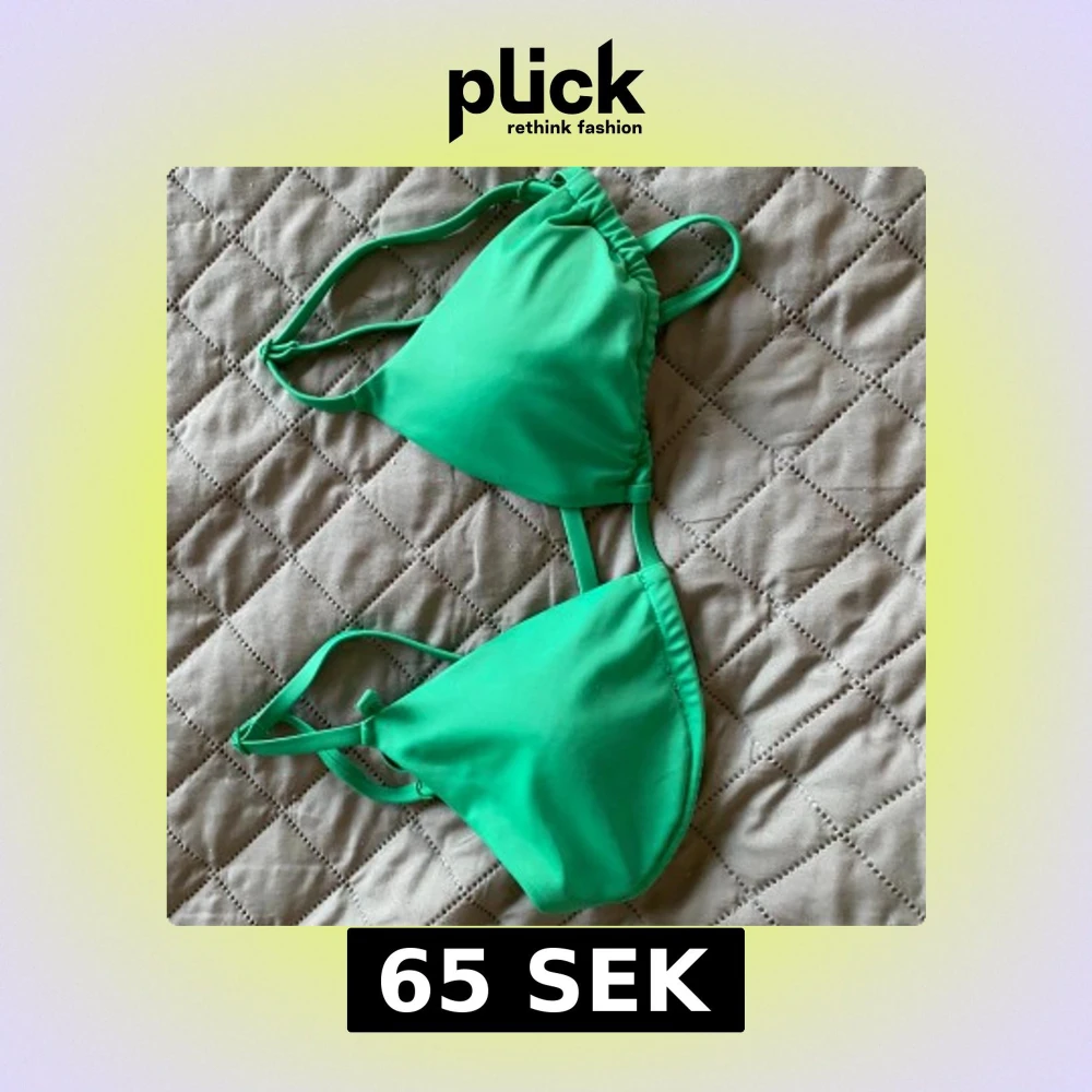 Snygg grön trekantsbikini från Kappahl i storlek S. Klassisk modell med smala axelband och knyt i ryggen. Perfekt för stranden eller poolen, enkel att justera för bästa passform. Materialet är mjukt och stretchigt för en bekväm känsla. Aldrig använd.