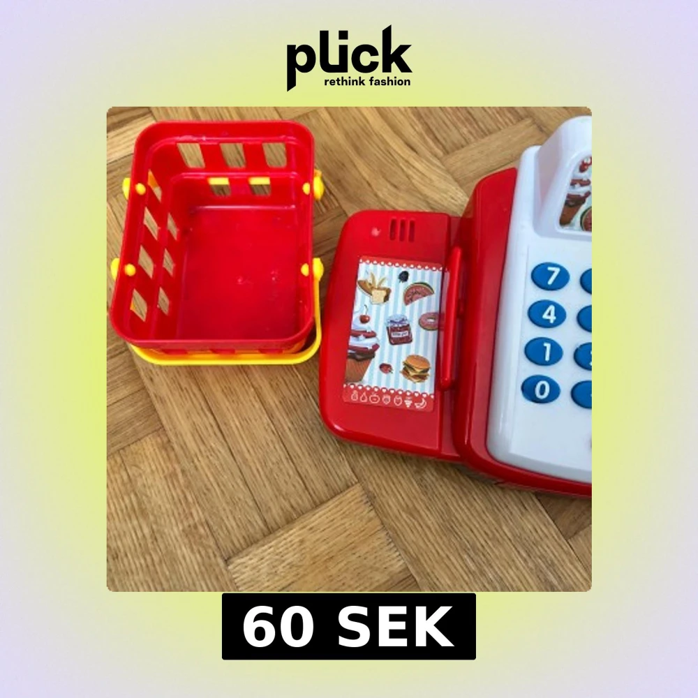 Ingen bok syns på bilderna, utan det är en leksakskassaapparat med tillhörande varukorg, mynt och kort. Perfekt för att leka affär och träna på att räkna och hantera pengar. Färgglad och rolig för unga som gillar rollspel och shopping.