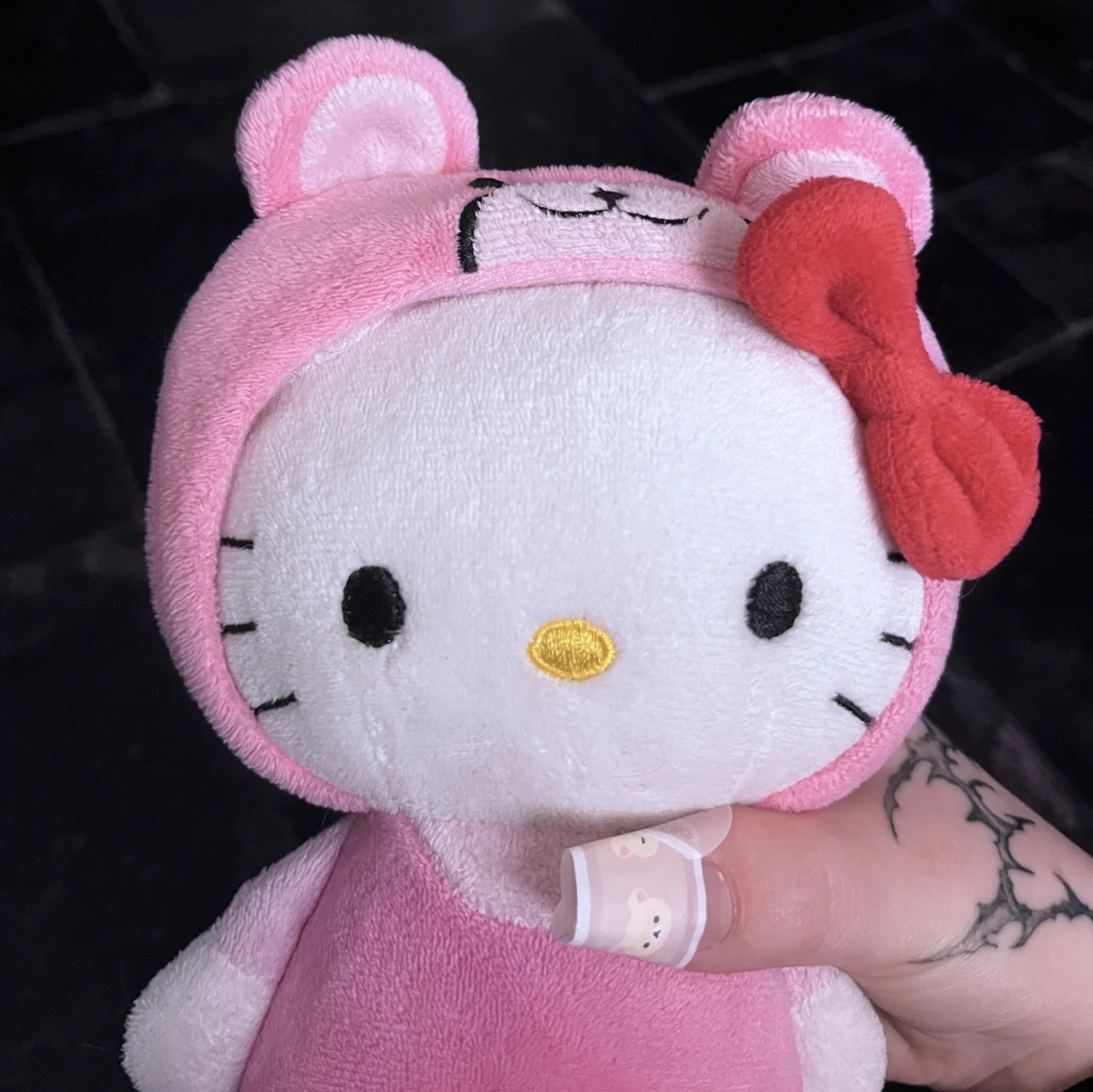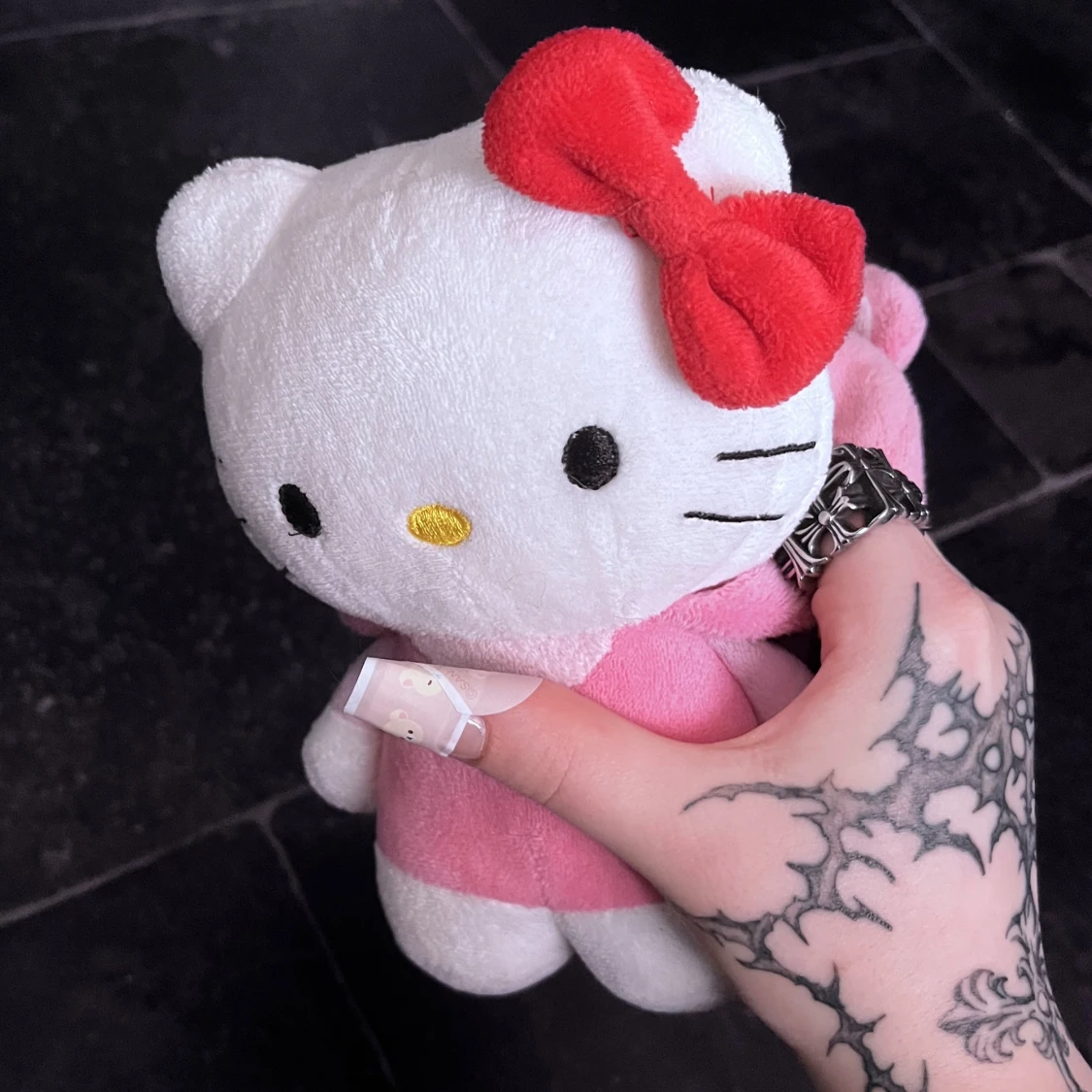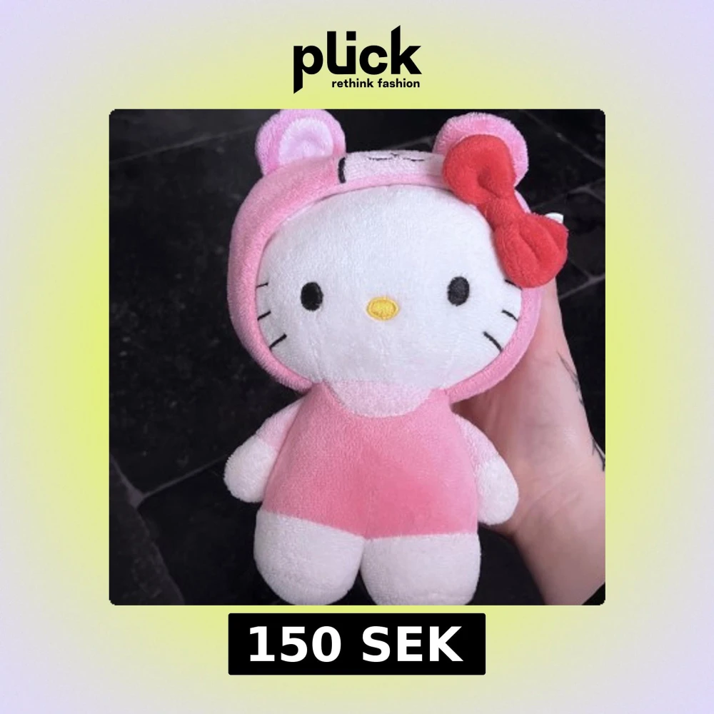 Säljer en sött Hello Kitty från Sanrio. Den har en rosa dräkt och man kan ta av luvan från huvudet om man föredrar det <3