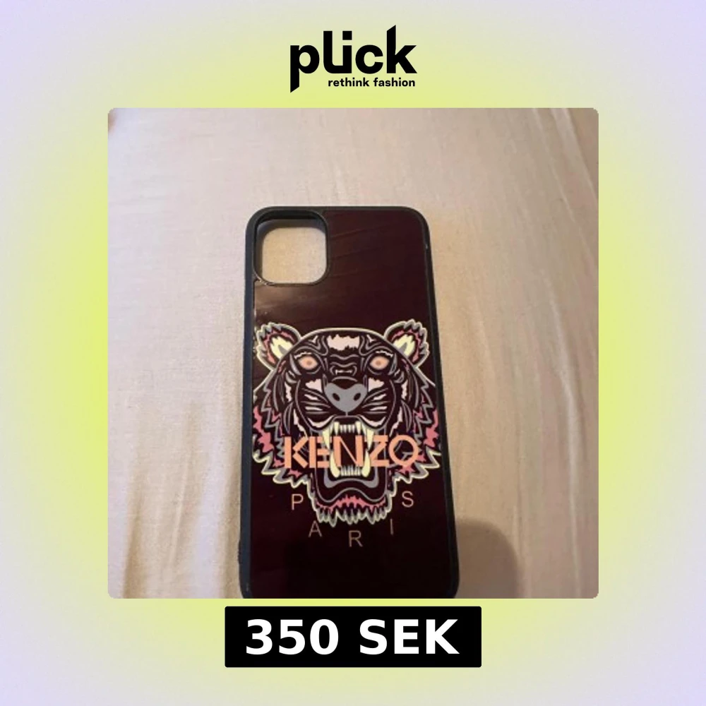 Snyggt mobilskal från Kenzo med ikoniskt tigertryck i lila, rosa och beige toner på mörk bakgrund. Skalet har Kenzo Paris-loggan framtill och är gjort i tålig syntet. Passar dig som vill ha en cool och unik look till mobilen.