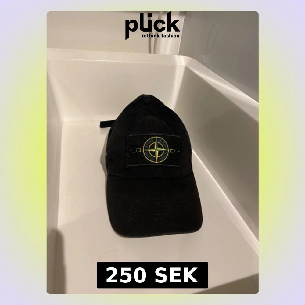 Säljer denna svarta Stone island kepsen. Denna har en badge på sig och inget tryck, därför ”bättre” och dyrare än andra Stone island kepsar med tryck istället!Man kan ändra storlek själv så passar alla. Skriv om du har några frågor!😄