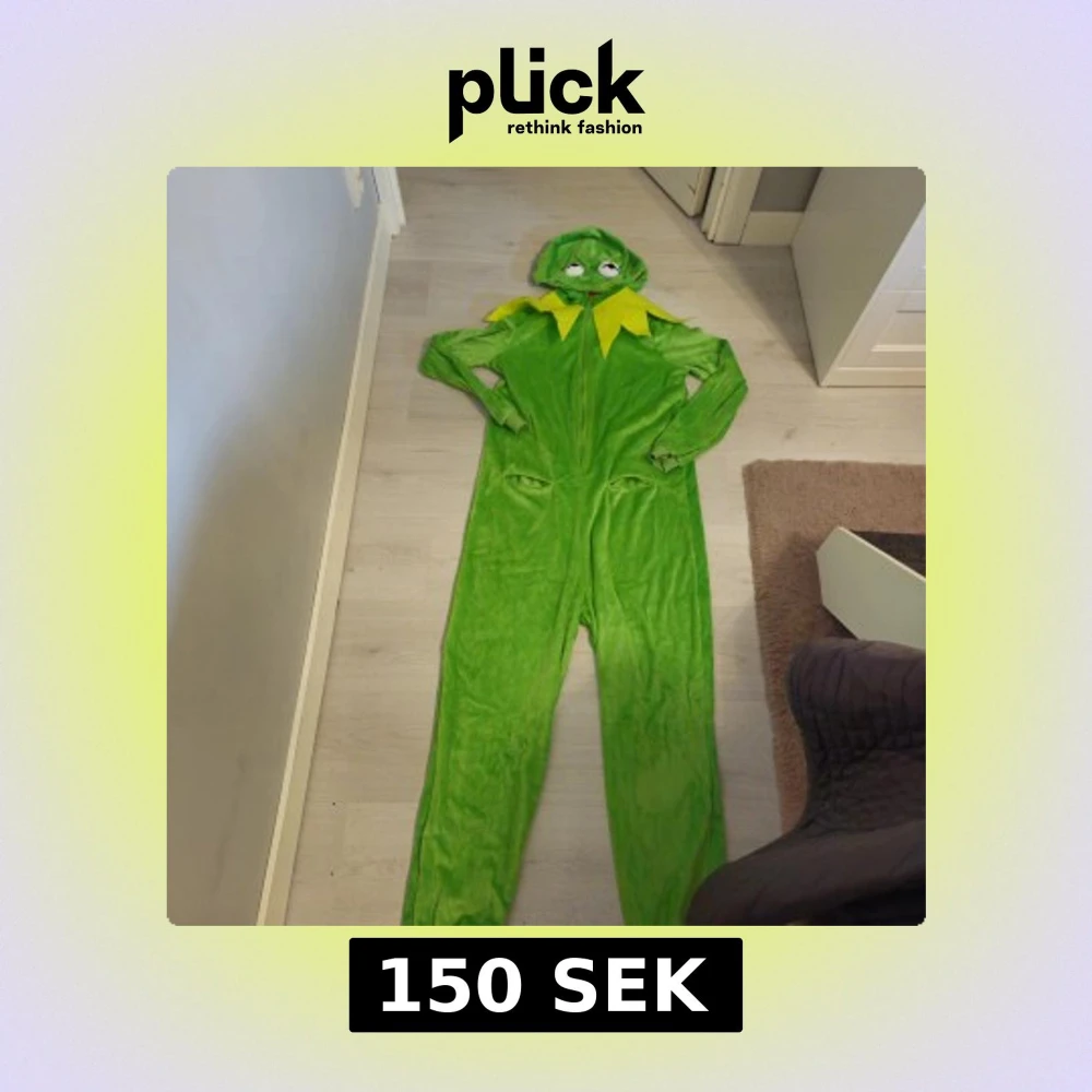 Grön Kermit med huva och broderade ögon, samt limegrön krage. Dräkten har dragkedja framtill och är tillverkad i mjukt syntetmaterial. Perfekt för maskerad eller temakvällar. Långärmad och helkroppsdesign för maximal komfort.