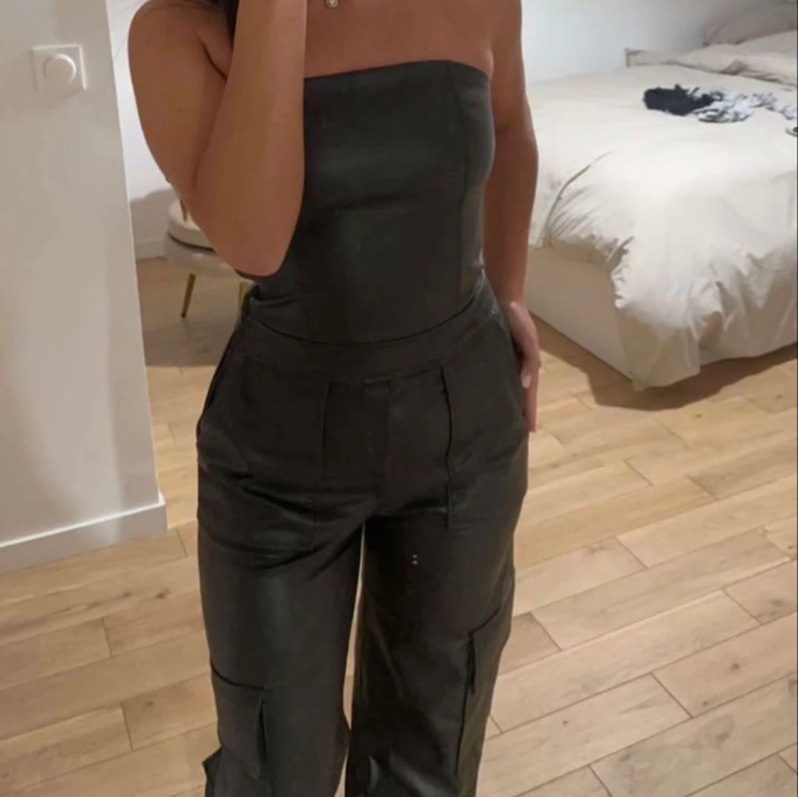 Jumpsuit i skinnimitation från Zara. Prislapp kvar!