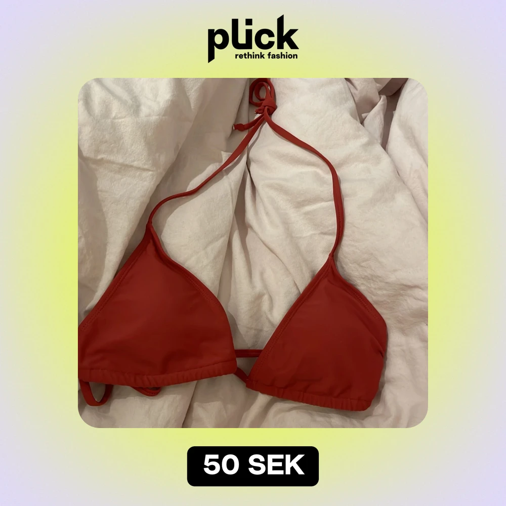 Aldrig använd! Snygg röd bikiniöverdel i trekantsmodell med knytband i nacken och ryggen. Är vadderad men går att ta ur om man vill❤️