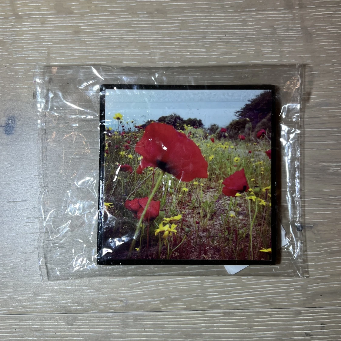 En gullig liten dekoration med röda blommor på! Som en liten platta eller tavla man kan ställa upp. Handgjord och såld på gatorna av Sardinien☺️