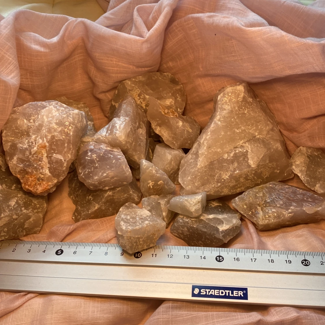 Svensk kvarts, i grå och lila. Stenarna har defekter, såsom grumliga eller gråa pigmenteringar och avlagringar av kalk och okänd mineral. Priset är för en liten sten, men säljer såklart gärna alla, eller några i taget. Specificera vilken storlek i dm