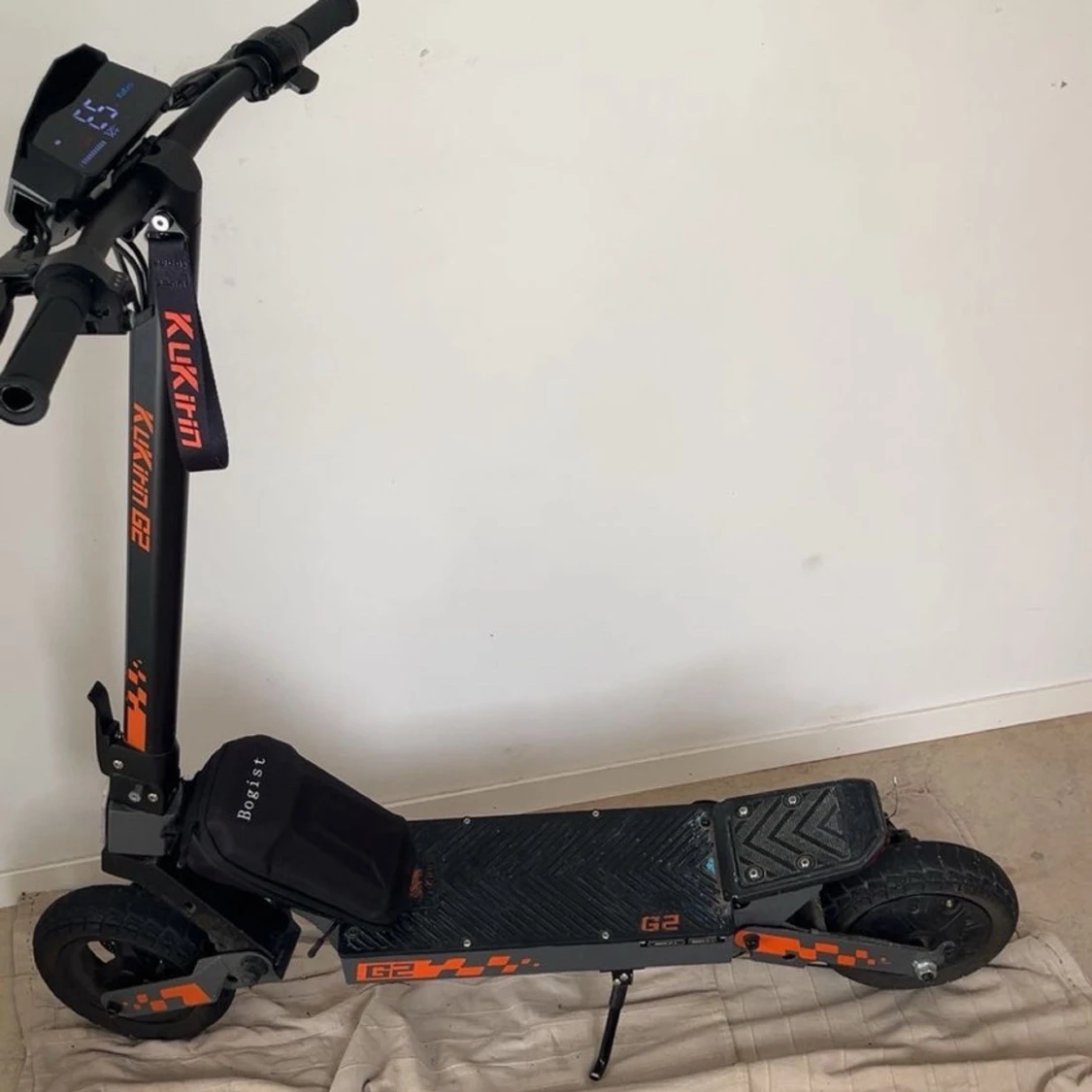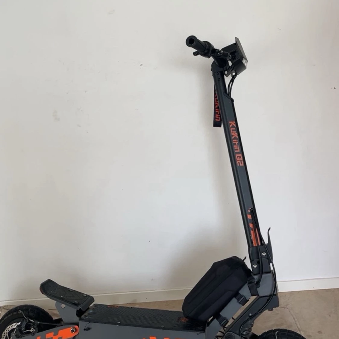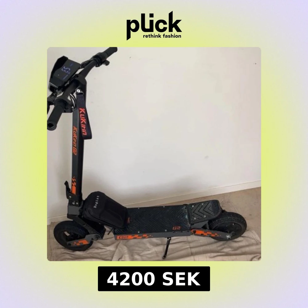 Kukirin G2 el-scooter med digital display, robust ram och stora däck för bekväm körning. Kör mellan 40-50km. Hastighet:50km/h. Säljer den eftersom jag inte behöver den längre, fungerar normalt förutom att bromserna är lite trasiga annars är den bra😊. Laddare ingår
