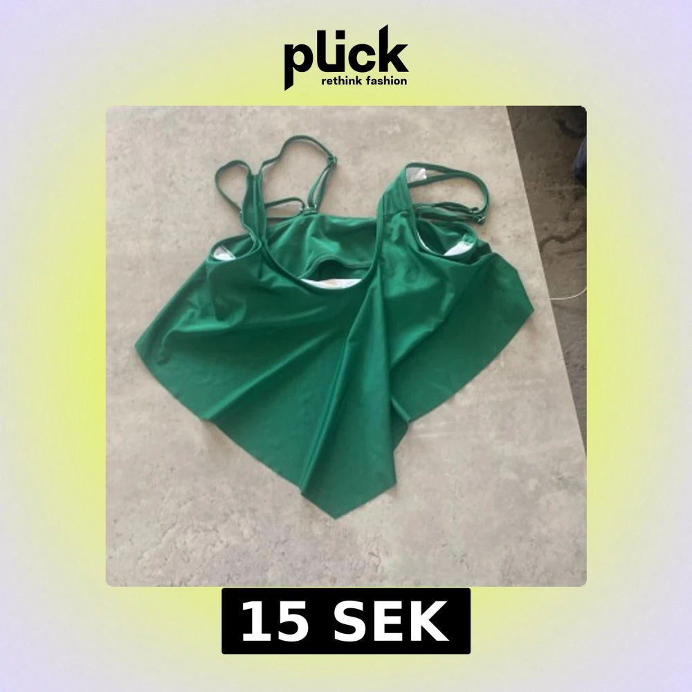 Snygg grön bikini med volangdetaljer och justerbara axelband. Perfekt för en dag på stranden eller vid poolen. Den har en stilren design med en härlig grön färg.